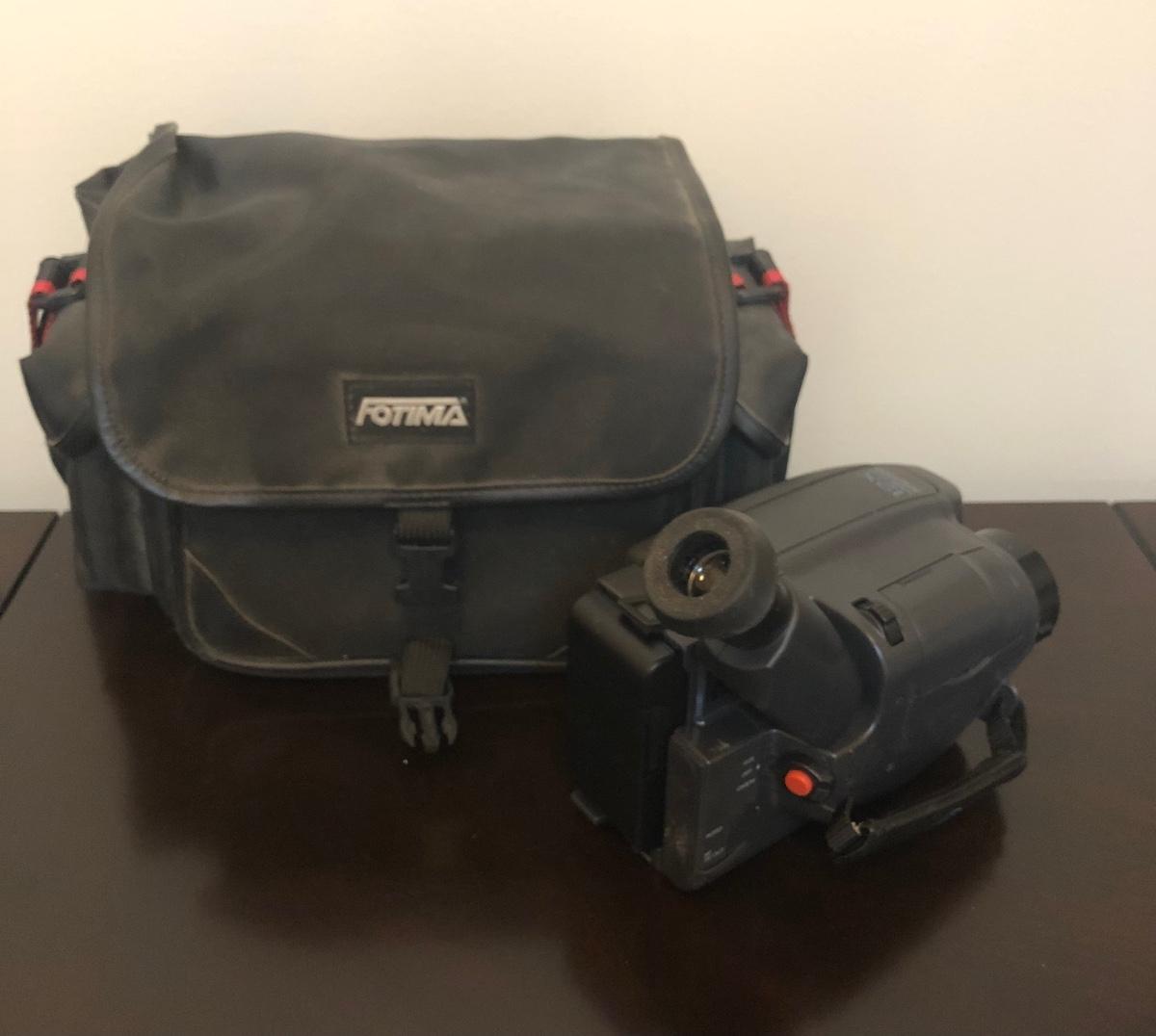 Untested. VHS-C Camcorder comes with a case and charger for its battery pack.