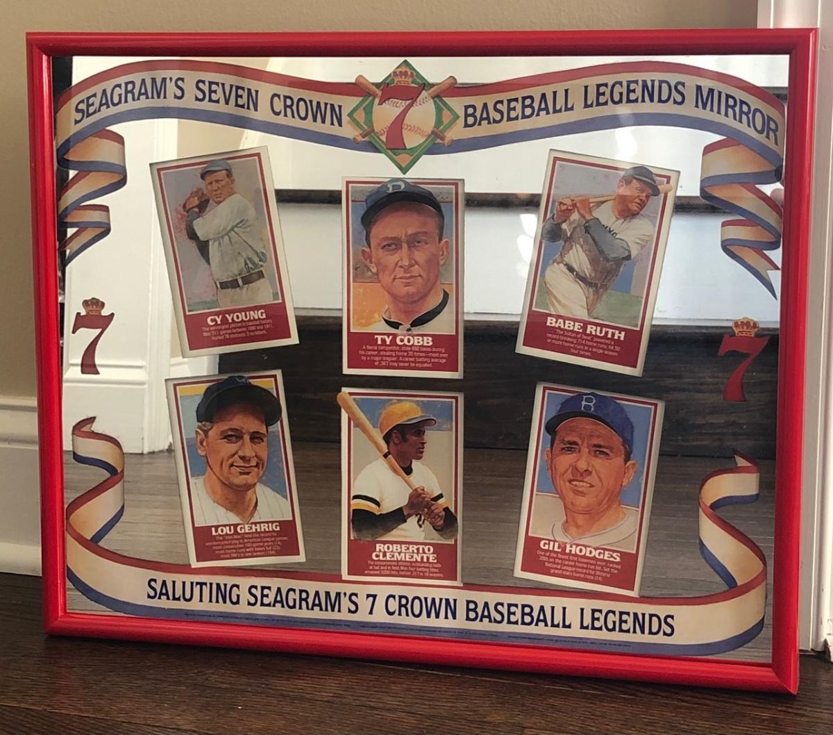LOT133M: Vintage Framed Seagram's Seven Crown Baseball Legends Mirror