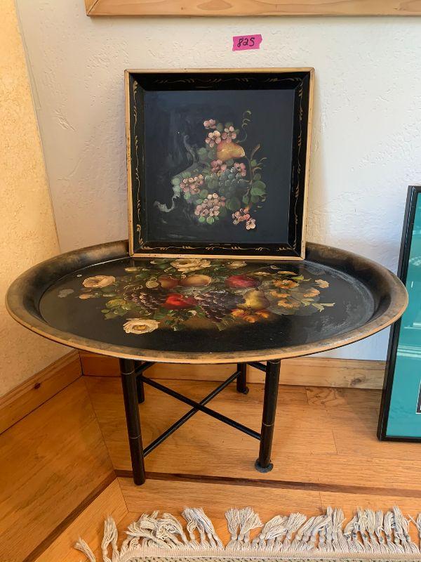 Metal Table h 19" x d 25" x w 20.5" Tray metal 14.5" square