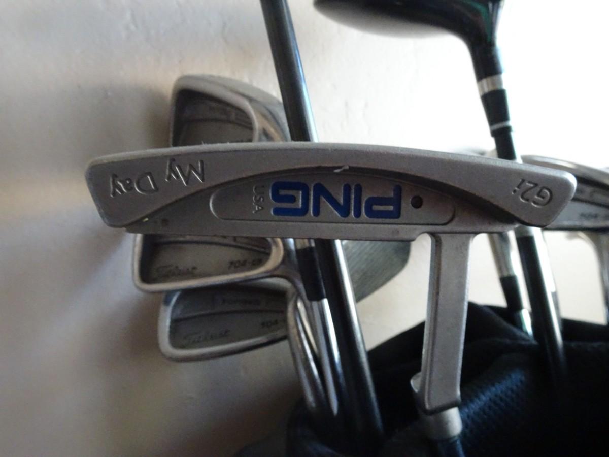 LOT 825 GOLF CLUB SET. PIN SEEKER WOODS, TITLEIST IRONS AND PING PUTTER