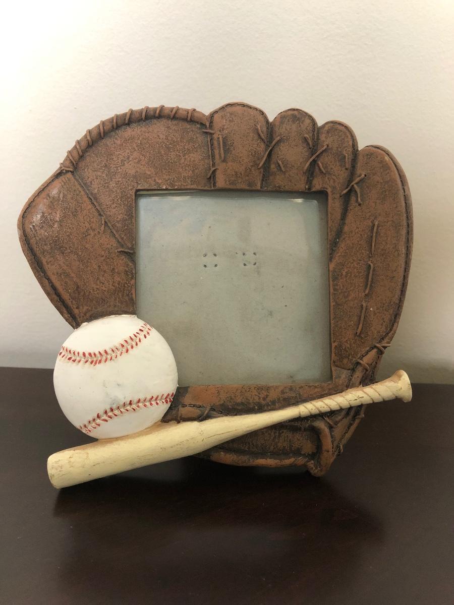 A collection of baseball themed memorabilia including two unopened Starting Lineup Figures with baseball cards for Bobby Bonilla & Ryne Sandberg, two small baseball frames and four books:
