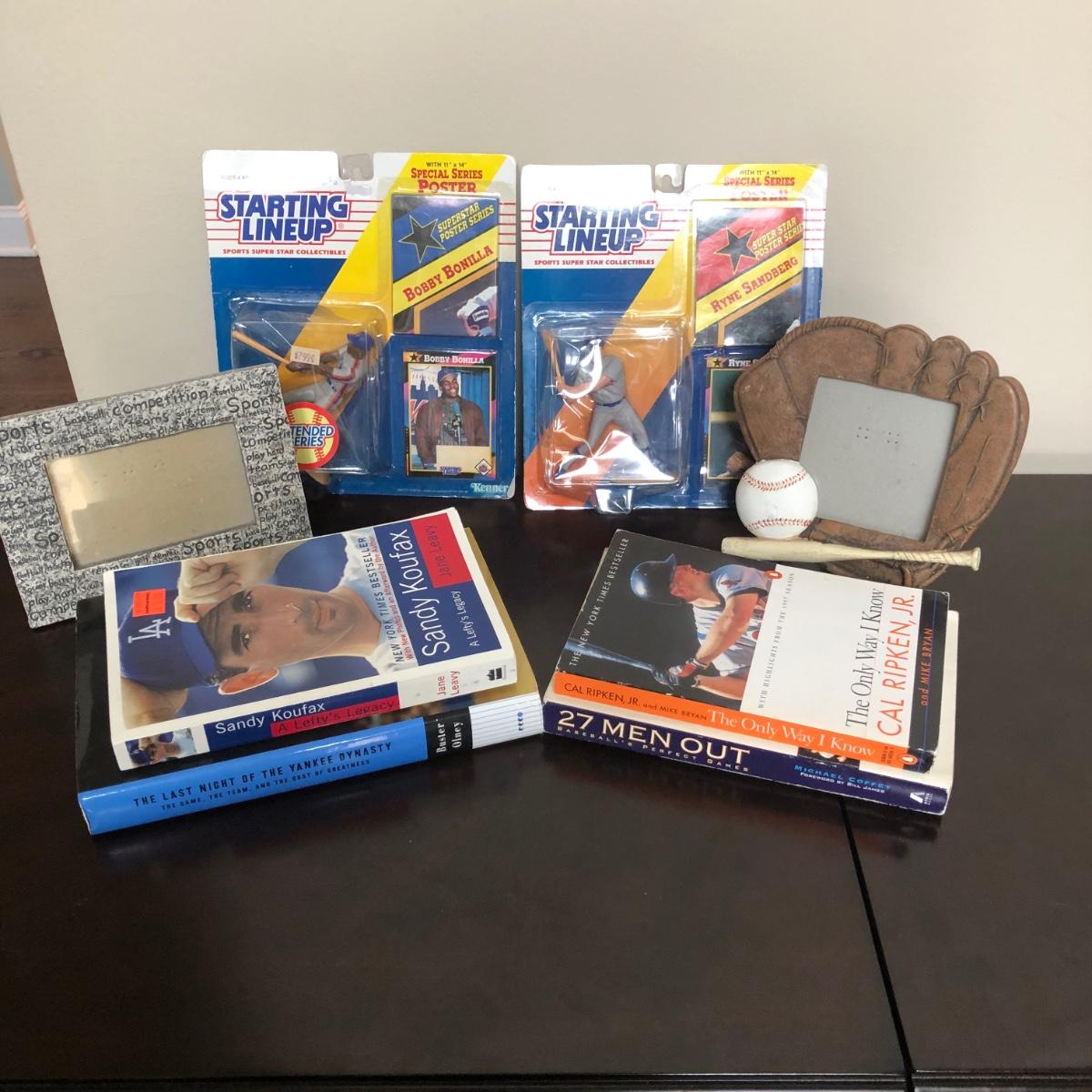 LOT156M: Unopened Bobby Bonilla & Ryne Sandberg Starting Lineup Figures w/ Cards, Baseball Book Collection & More