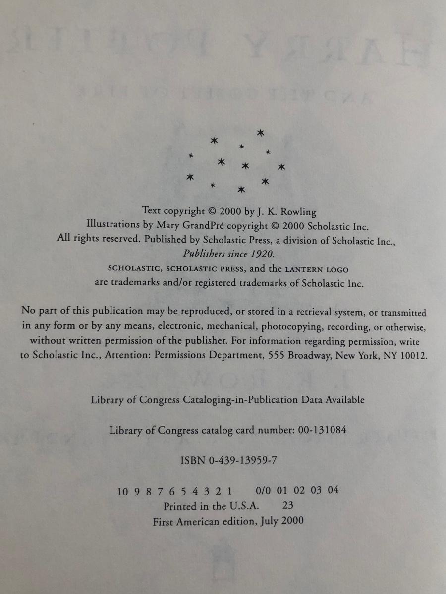 - Harry Potter & the Goblet of Fire by J.K. Rowling (hardback)