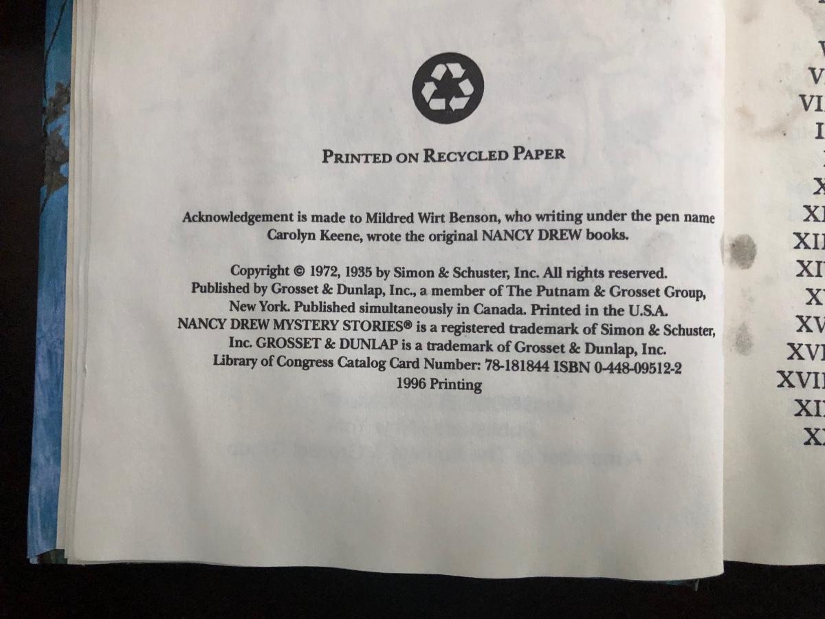 - Nancy Drew: The Message in Hollow Oak by Caroline Keene (hardback - has some noticeable water damage)