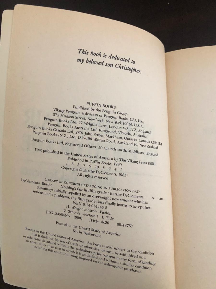 - Nothing's Fair in Fifth Grade by Barthe DeClements (paperback)