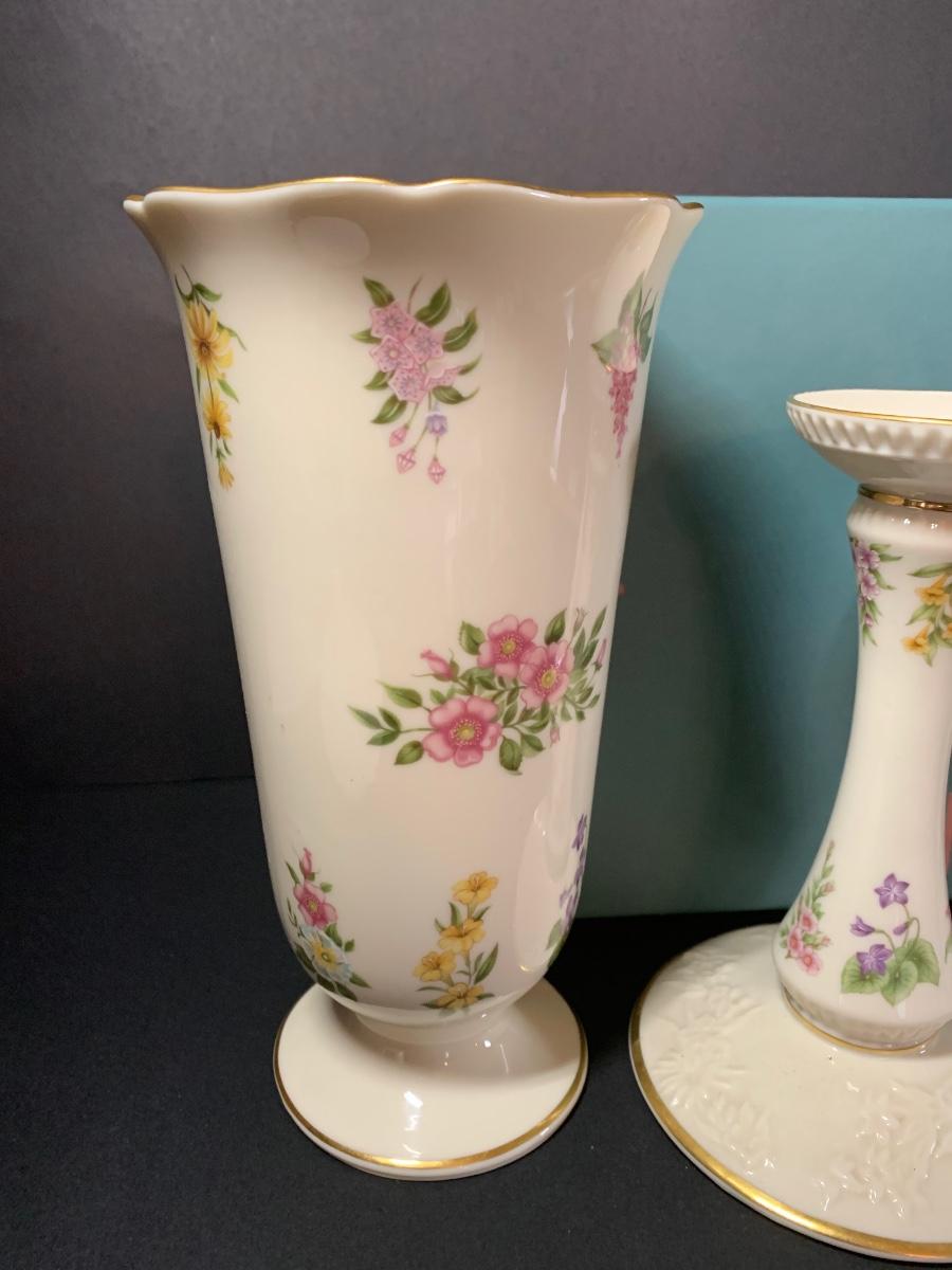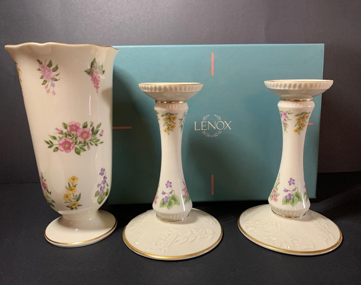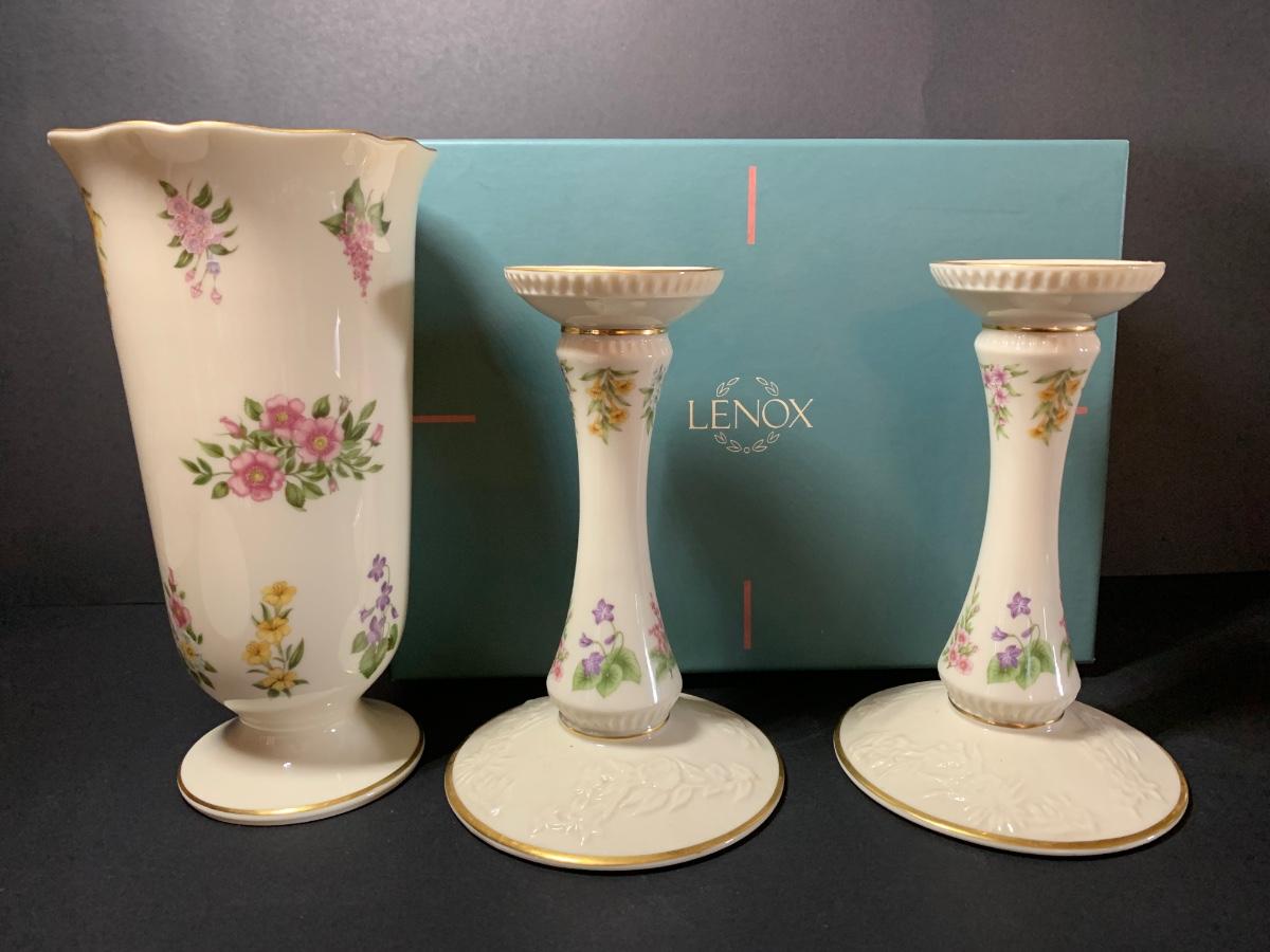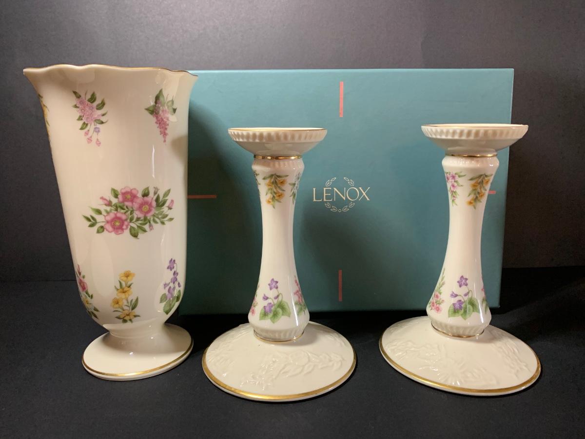 LOT 7: Lenox Constitution Candlesticks & Vase
