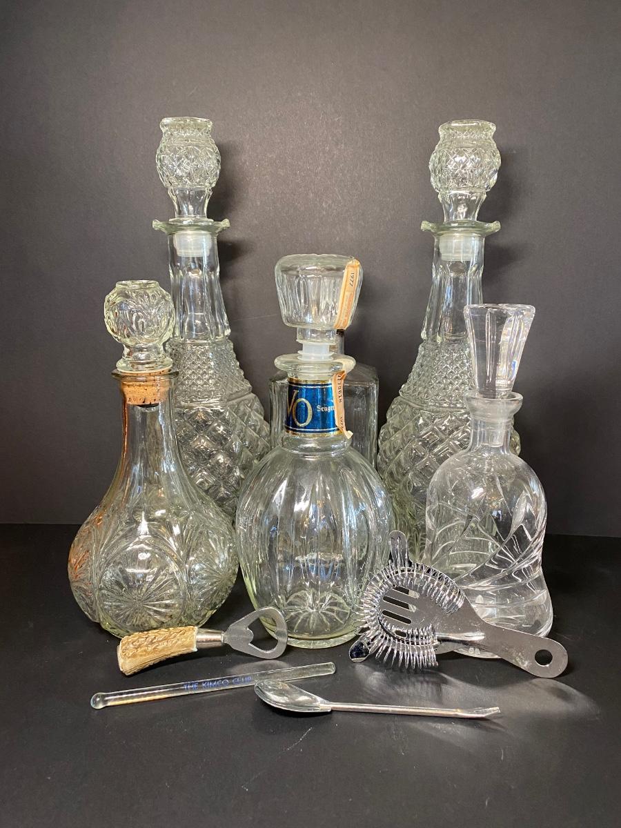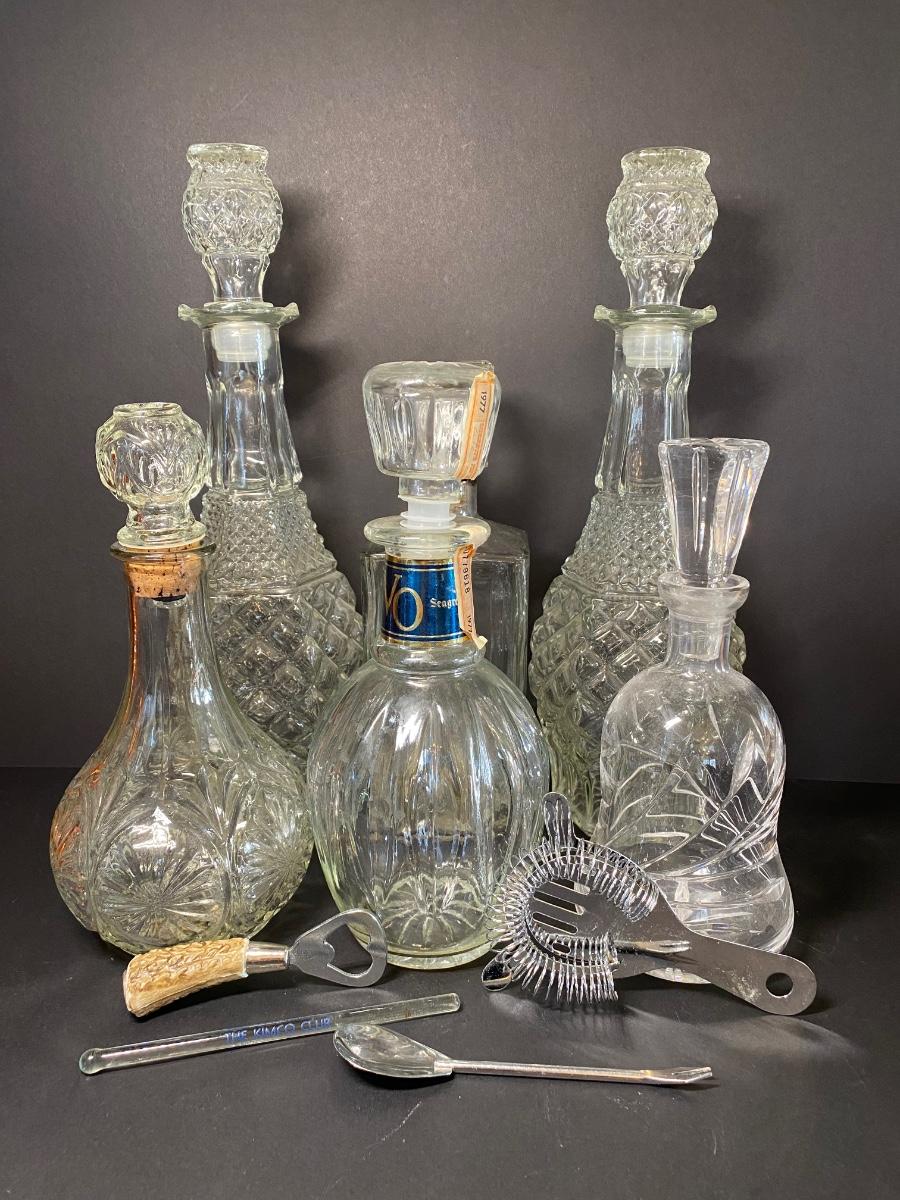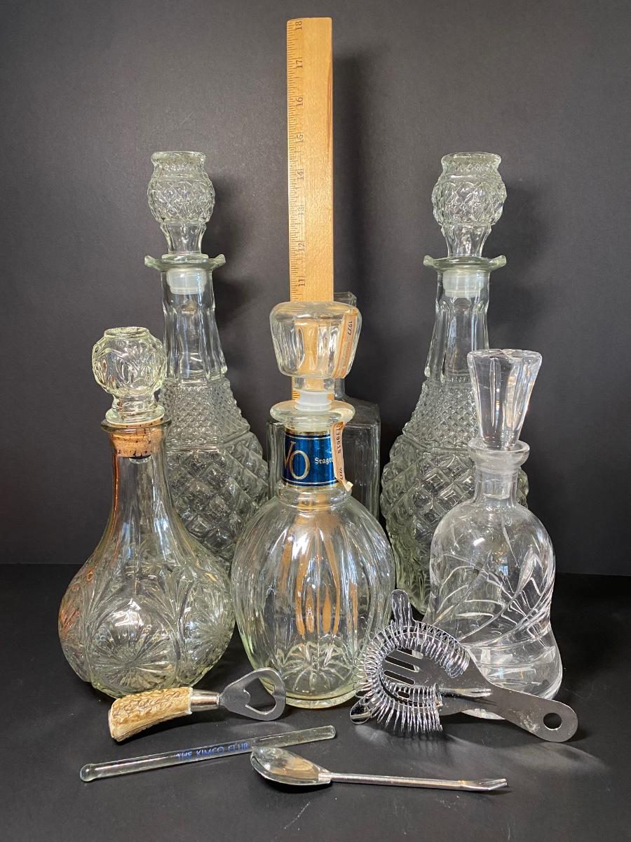 LOT 12: Vintage Decanters & Bar Tools