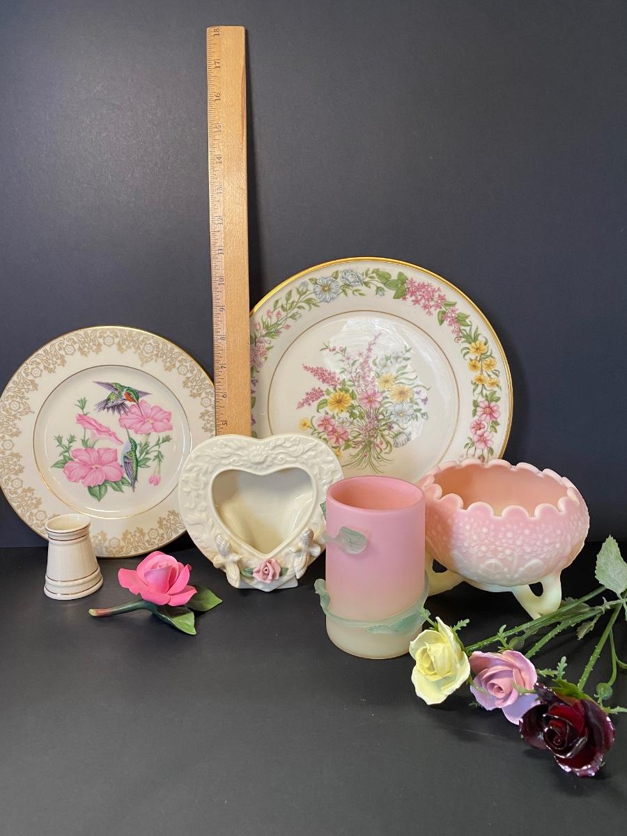 Lovely collection of Fenton, Lenox, Belleek & More. Stemmed roses are possibly porcelain and very delicate on flexible plastic stems. The best representation of the items. The pictures show condition, measurements if taken, and what is included in the lot. Due to the large amount that we photograph and the time frame, we are not always able to take measurements. All items unless noted, are pre-owned and have been used. If you purchased furniture, you must bring help. We do not allow one person to carry large furniture out on their own. Bring help, tools and a truck for the safety of our client’s homes, and your personal safety. Any damages that result to the property including walls, and floors due to moving of the furniture will be charged to the buyer. Company policy. Thank you.