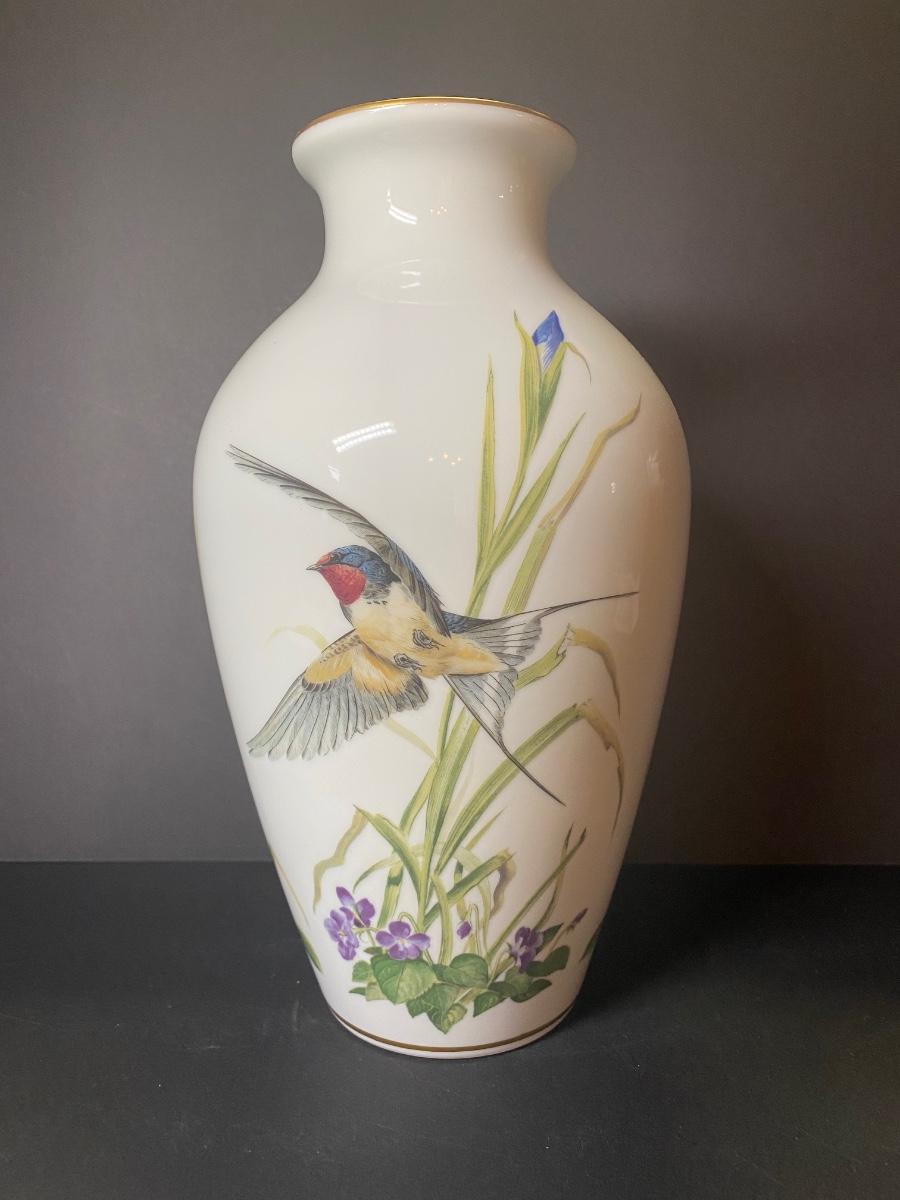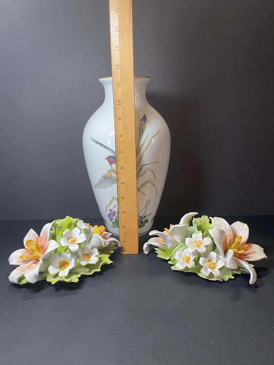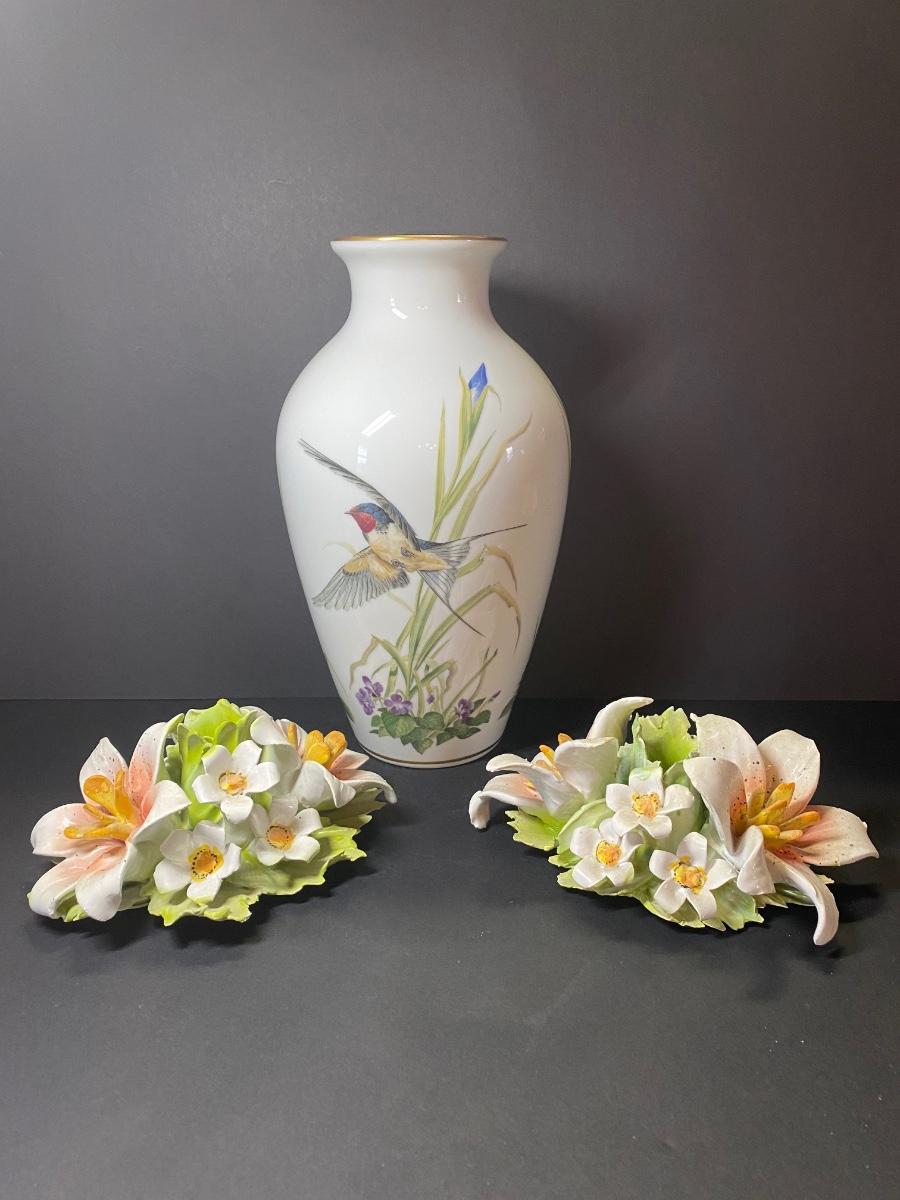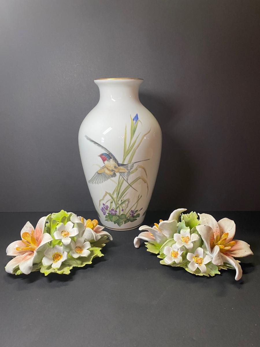 LOT 35C: Vintage Capodimonte Flowers & Vintage Franklin Porcelain "The Meadowland Bird" Vase