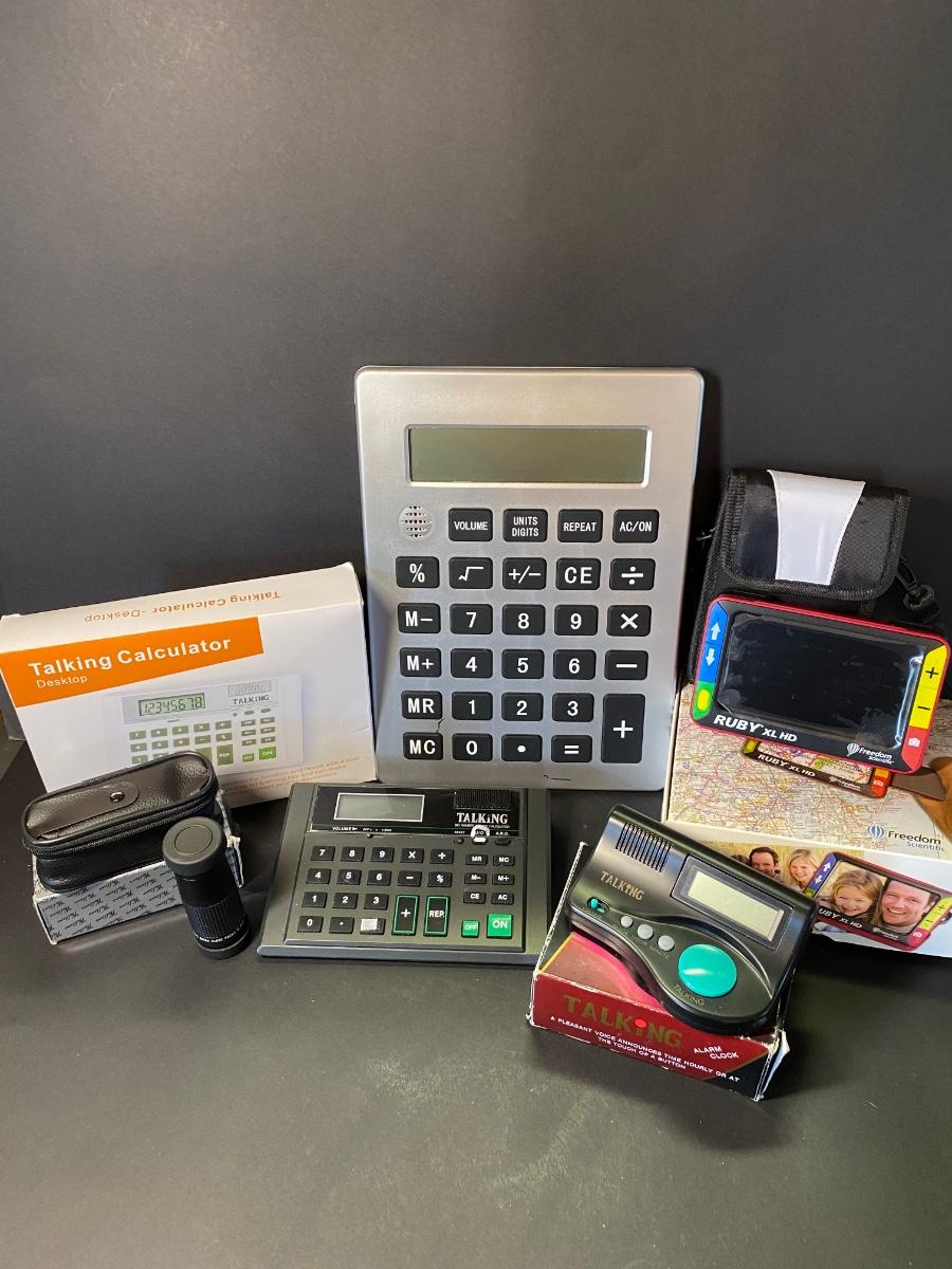 LOT 40C:  Gadgets & More: Calculators, Talking Alarm Clock, Ruby XL HD Magnifier