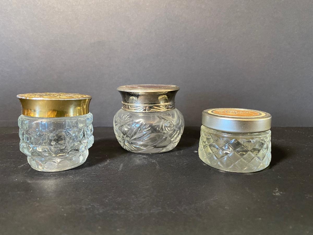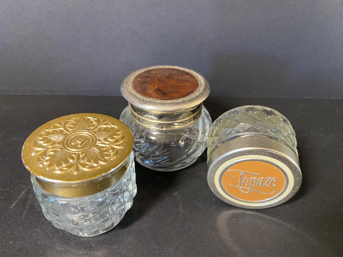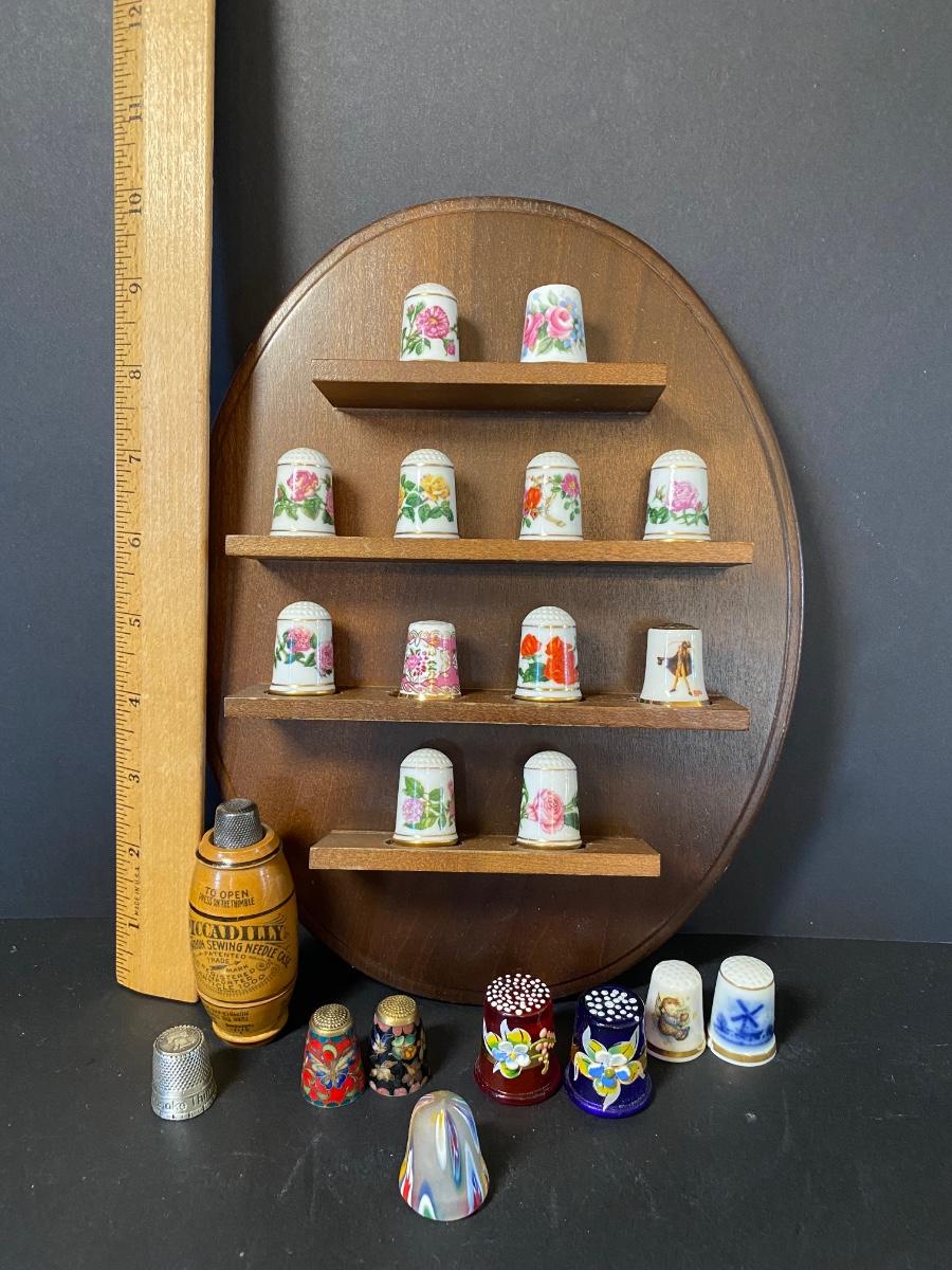 Vintage thimble collection. trinket boxes,perfume jars and ladies handkerchiefs.