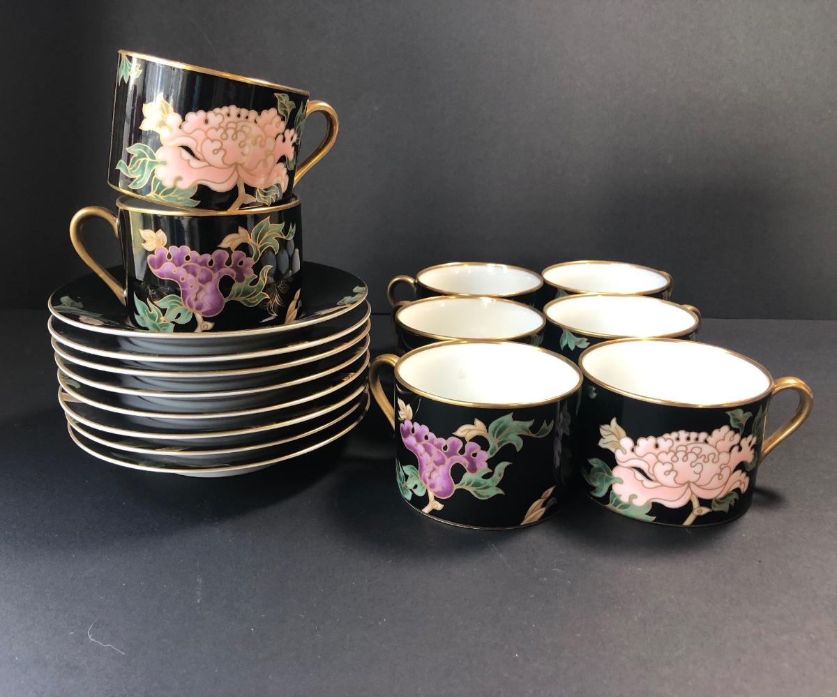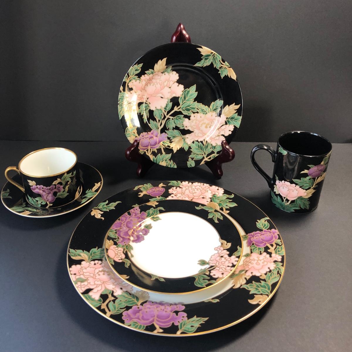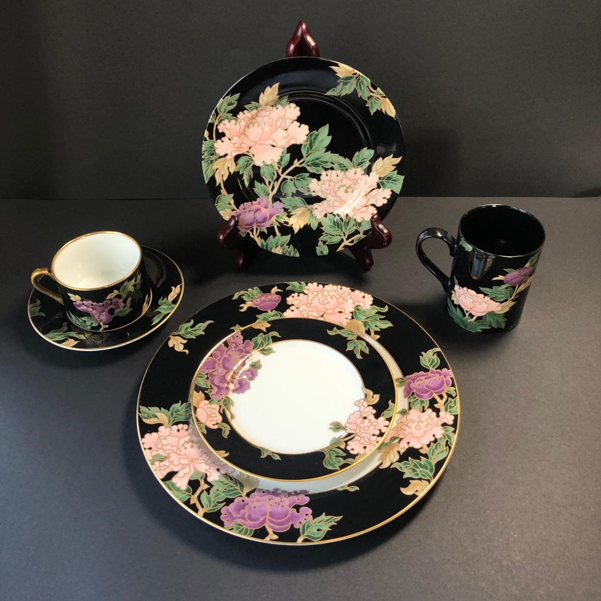LOT55M: Fitz & Floyd Cloisonne Peony China Dinnerware Set