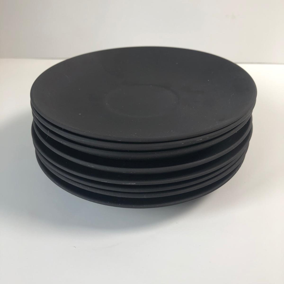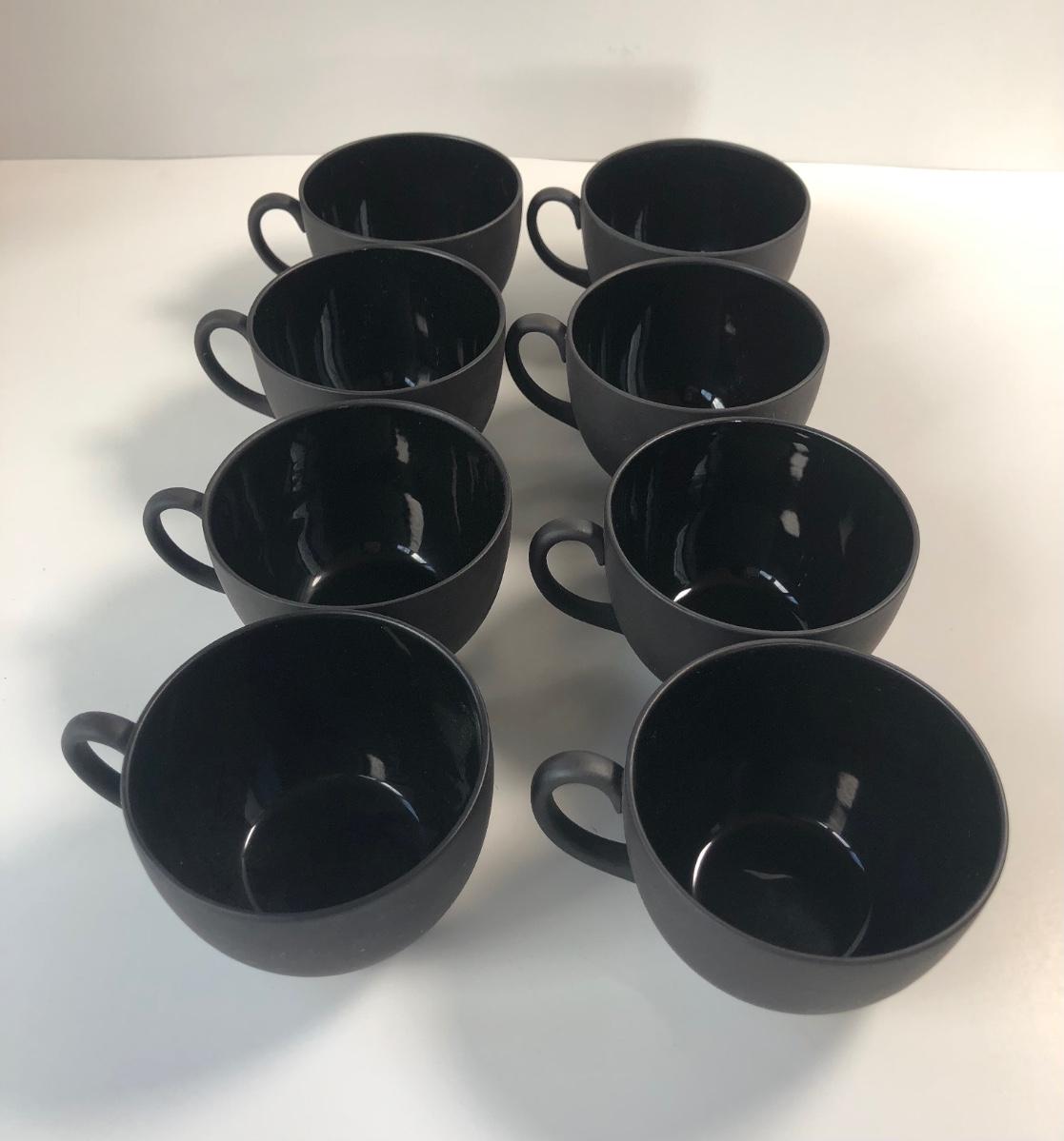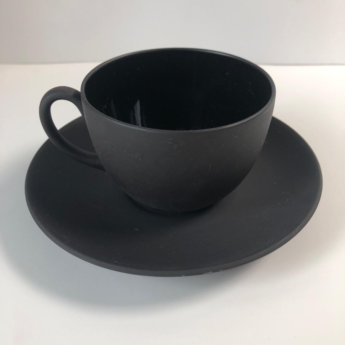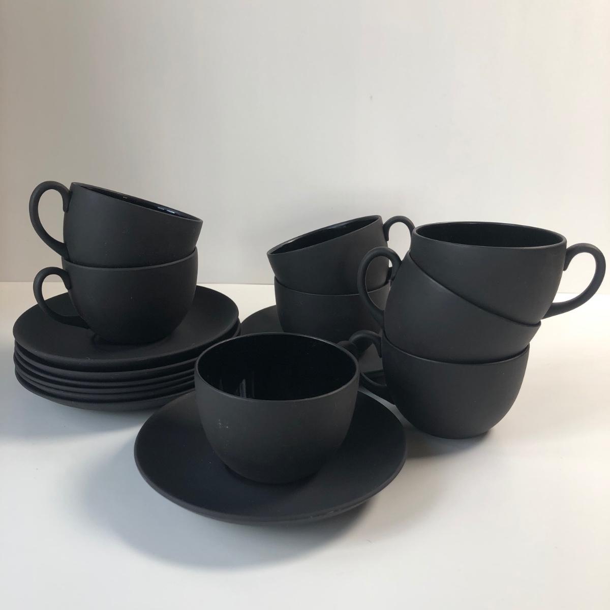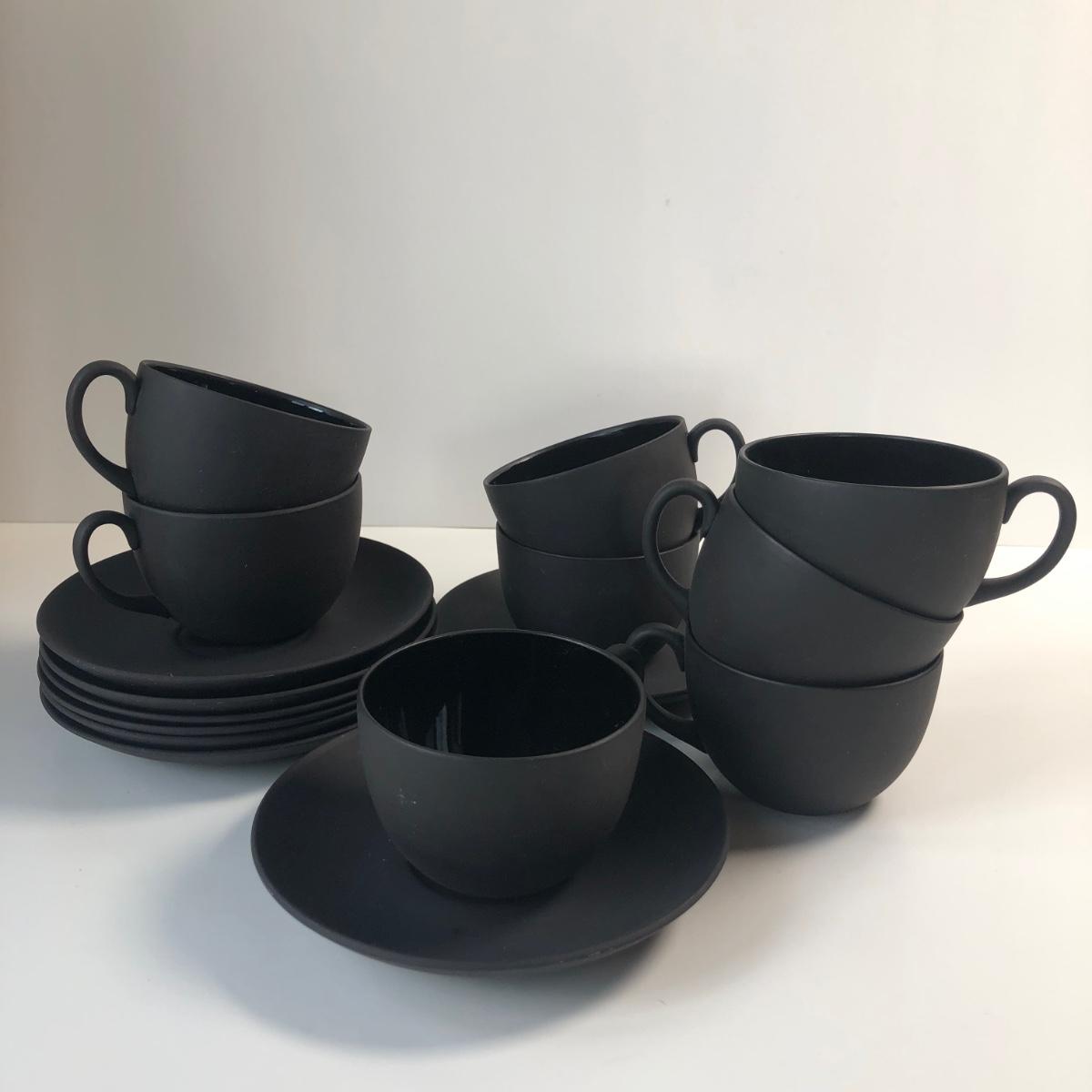 LOT57M: Vintage Wedgewood Black Basalt Jasperware Matte Cups & Saucers