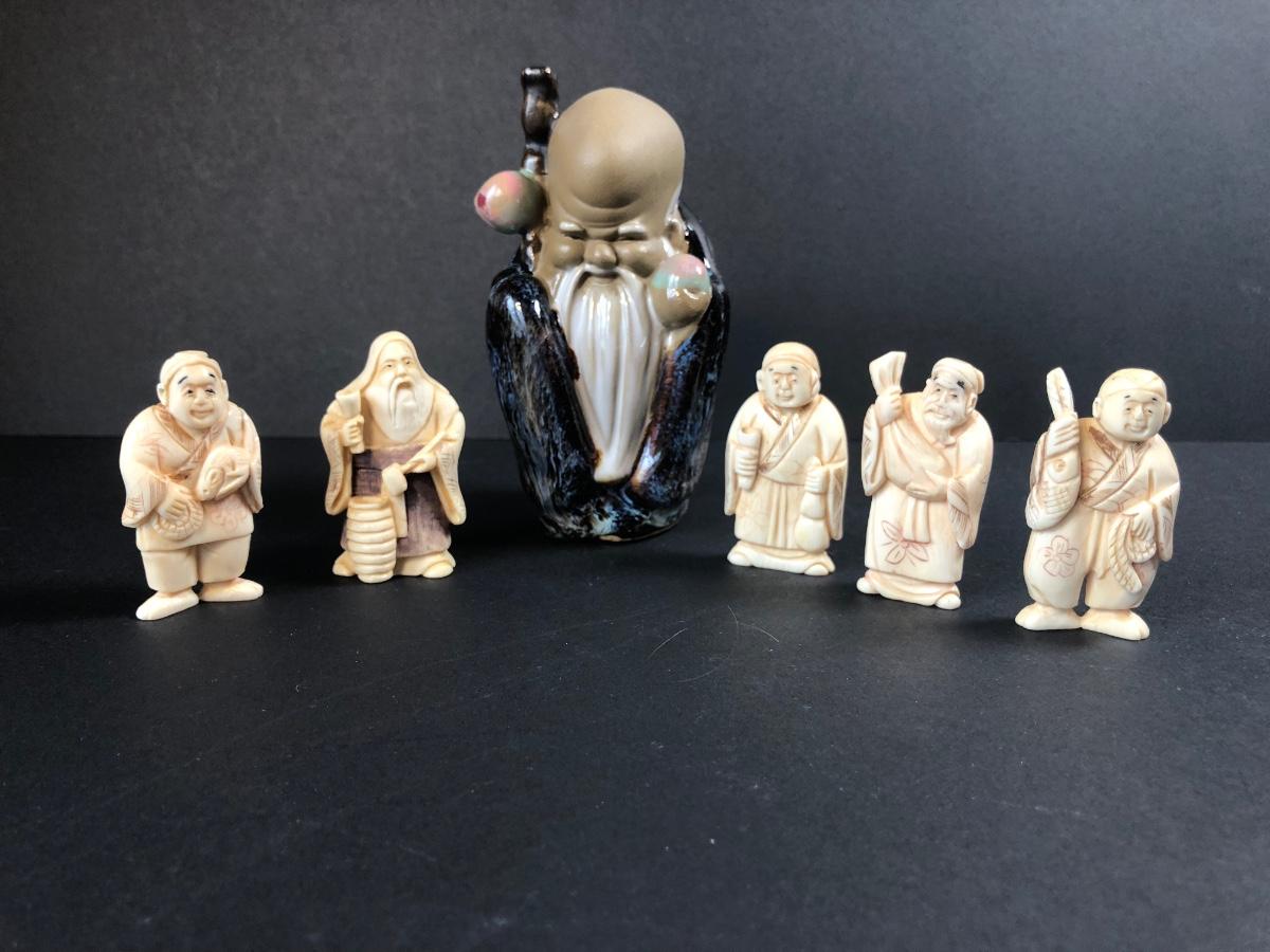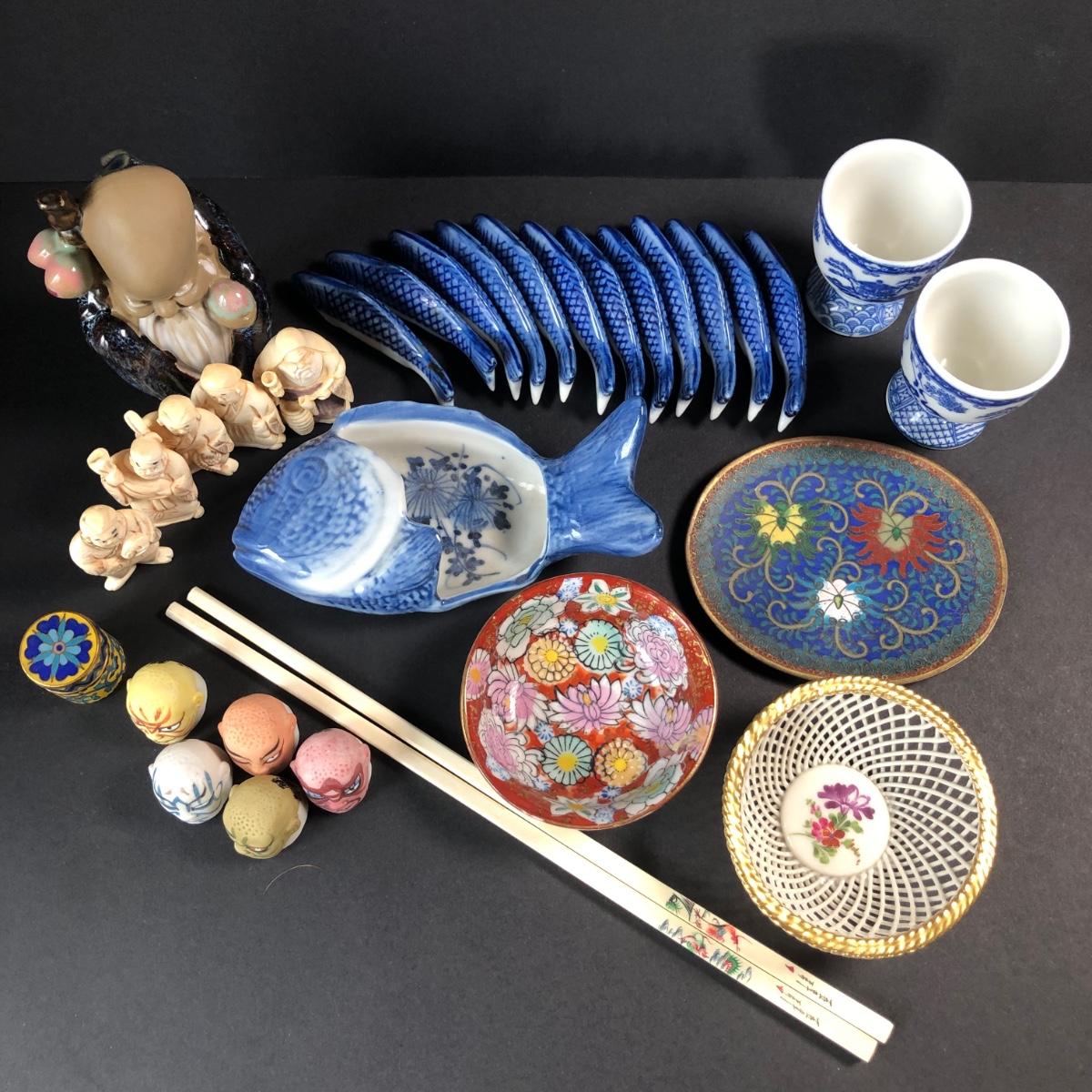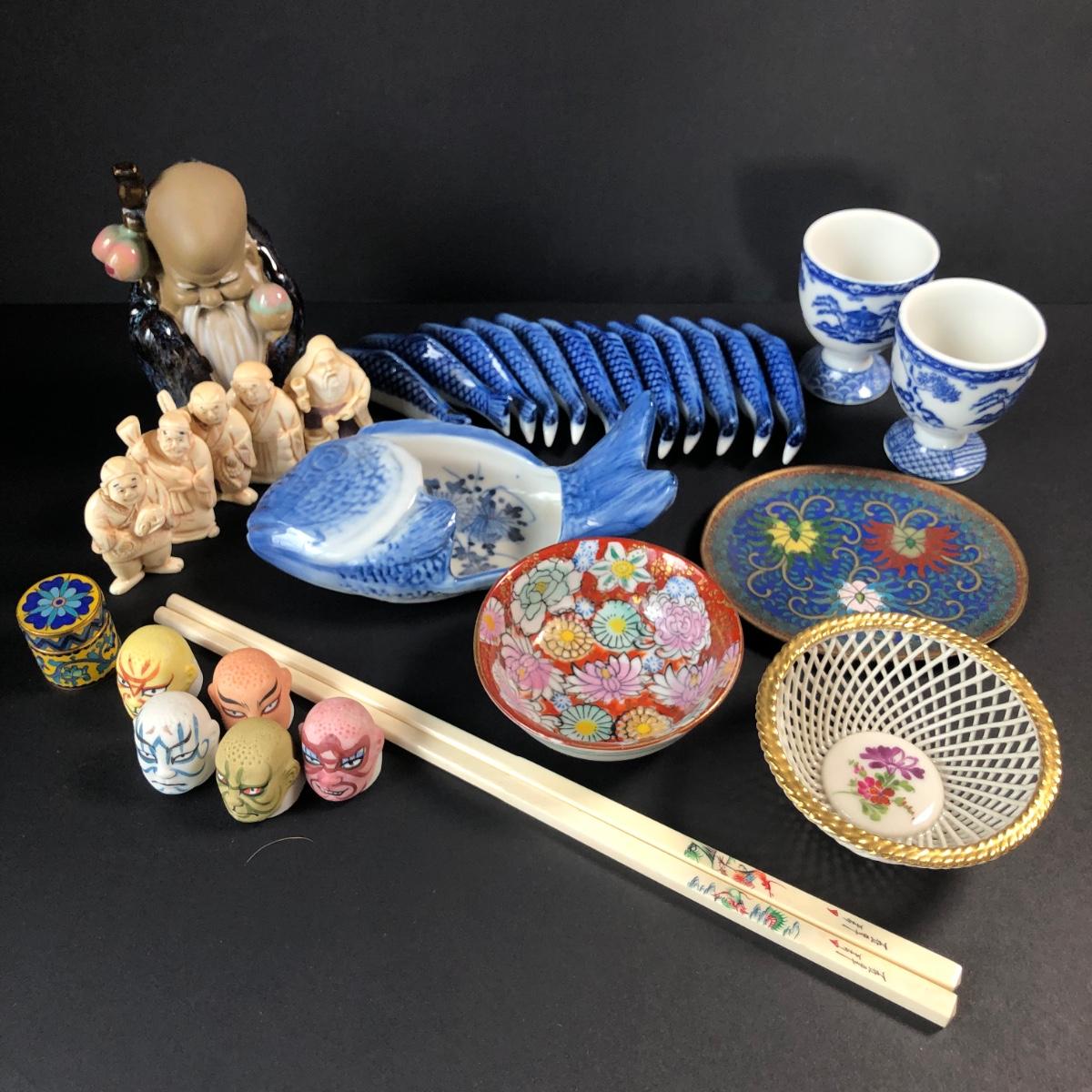 LOT58M: Japanese Mask Thimbles, Statues, Chopsticks & More