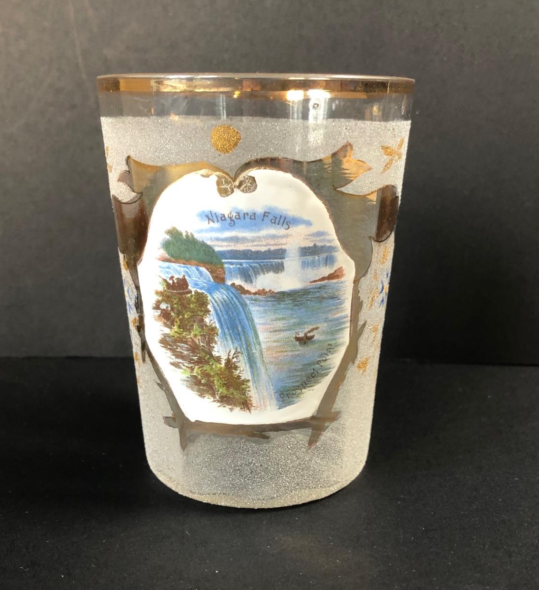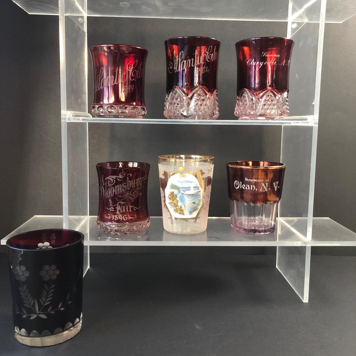 Includes seven glasses from Atlantic City, NJ; Claryville, NJ; Olean, NY; and Niagara Falls.