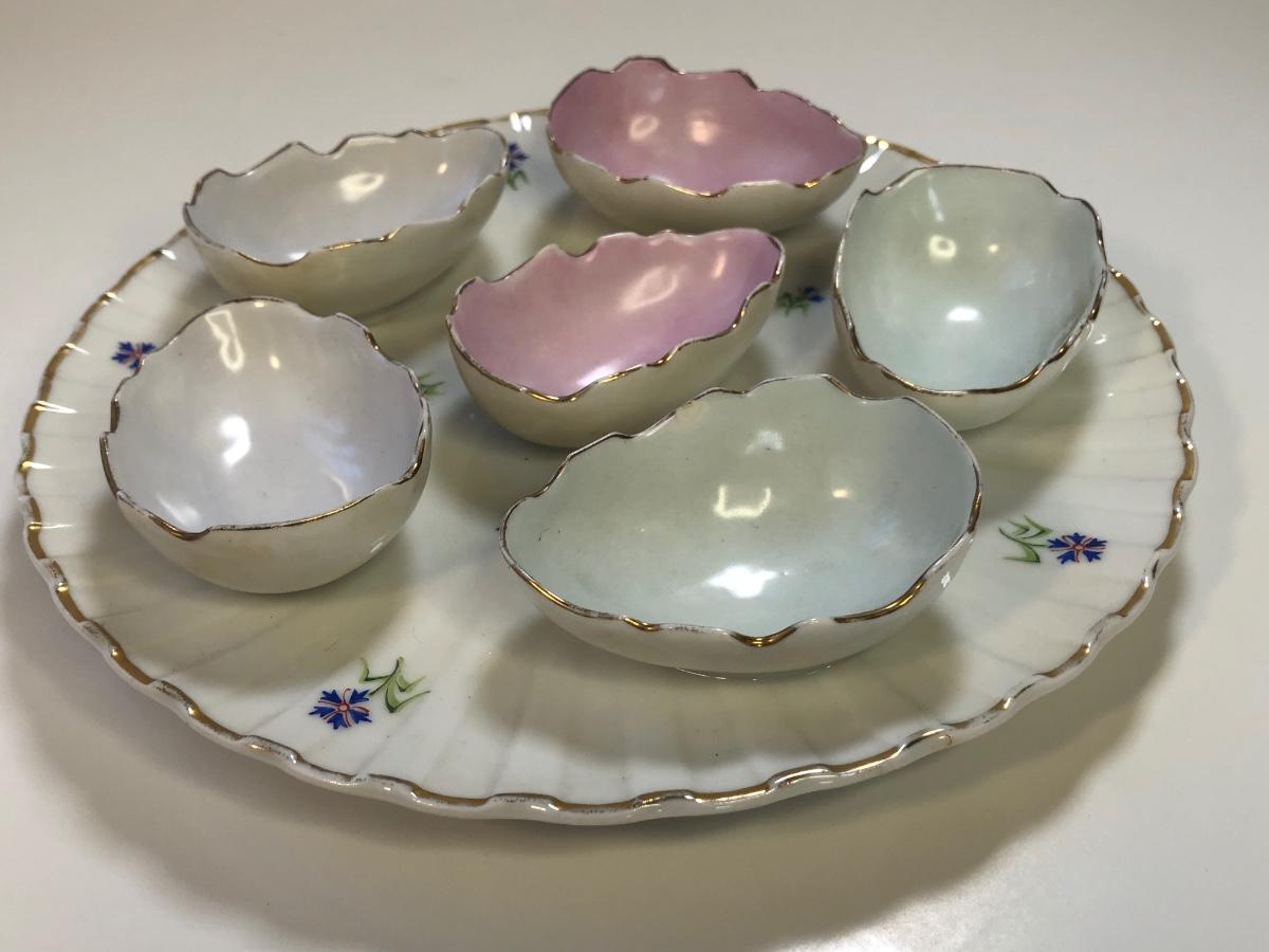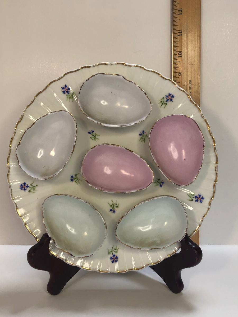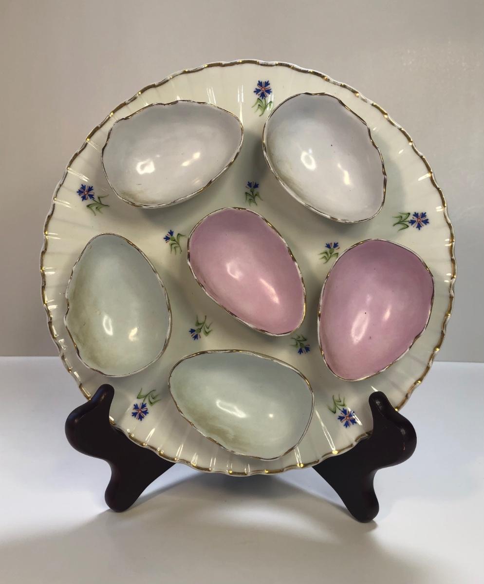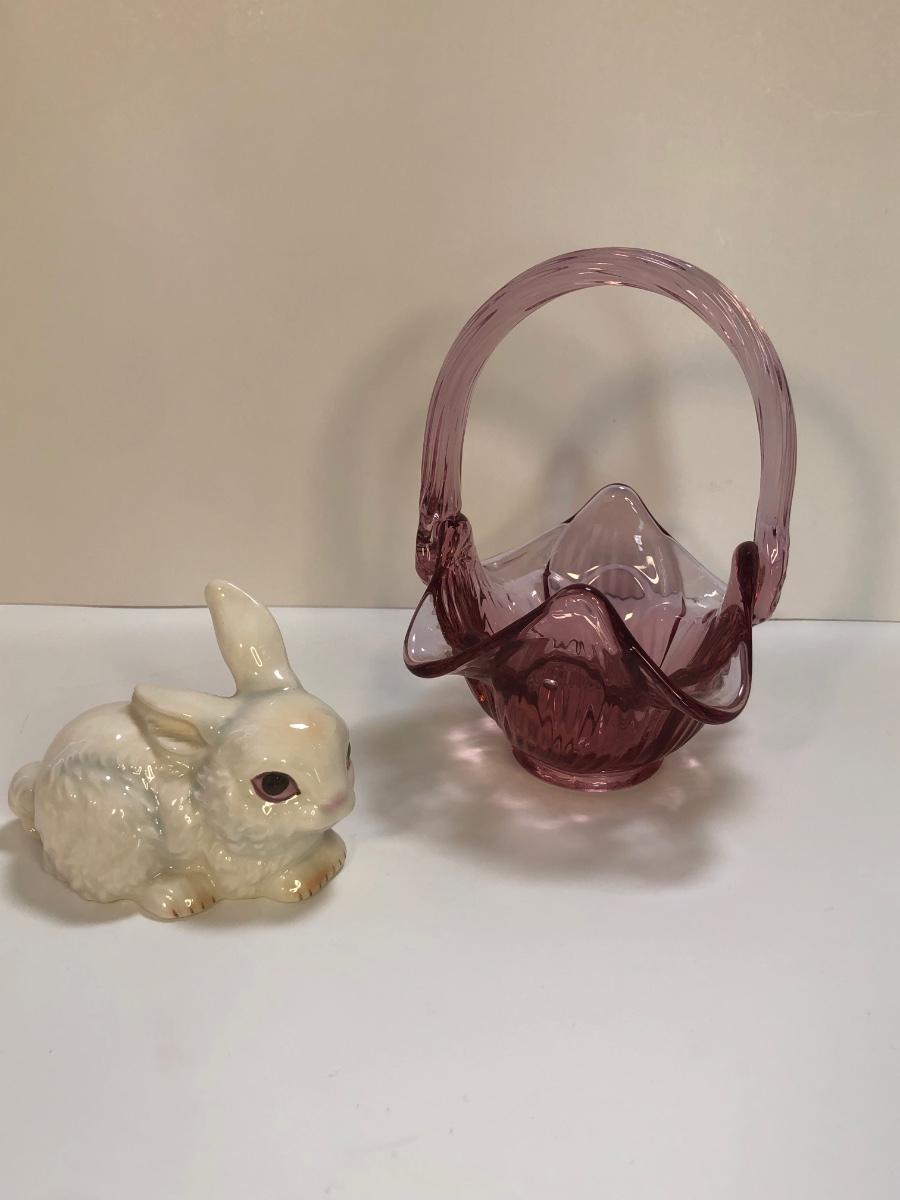 LOT68M: Fenton Glass Bowl & Basket, Painted Glass Vase, Goebel Rabbit & French Egg Plate