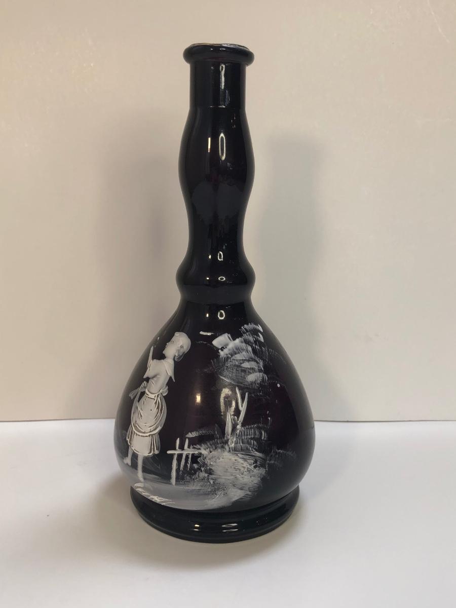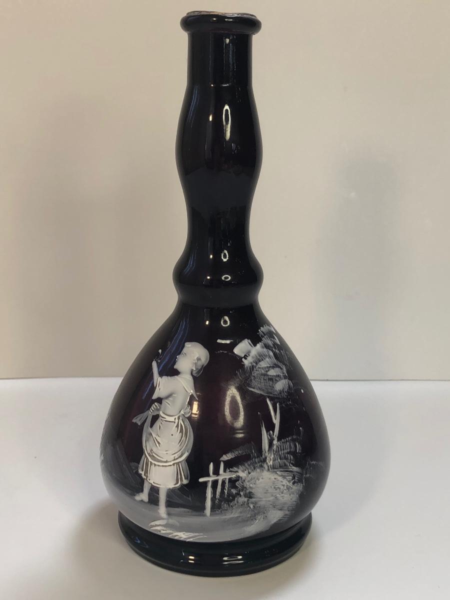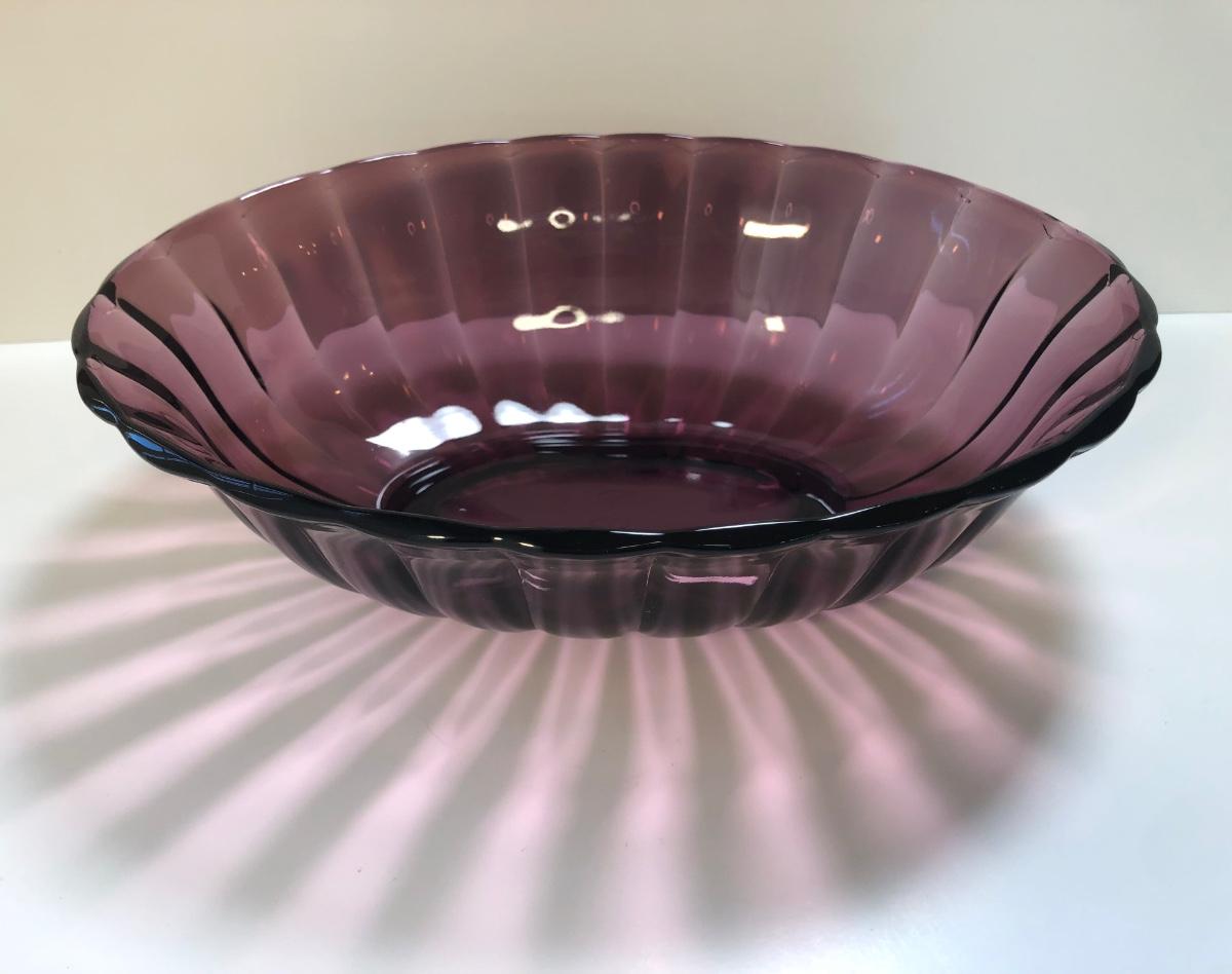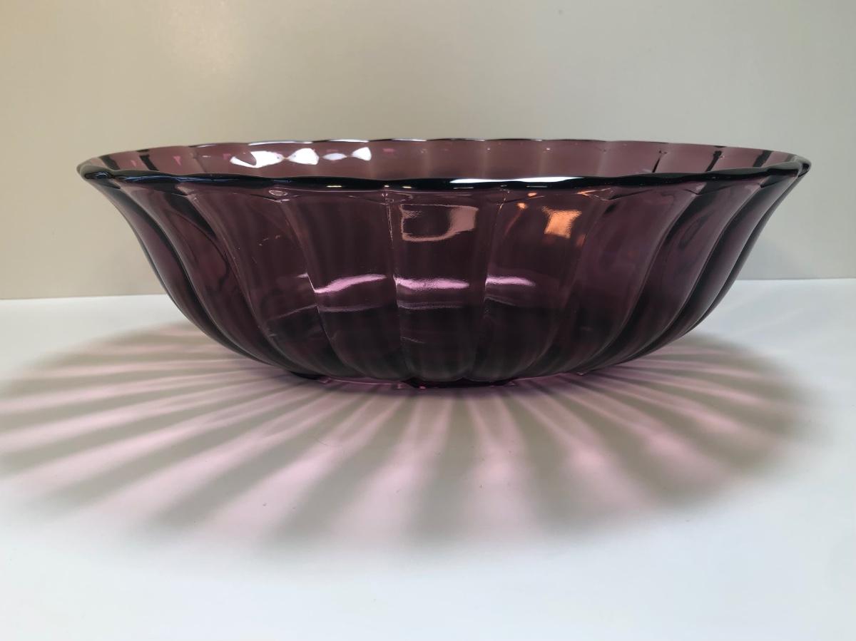 Includes a large purple Fenton glass bowl, a small purple Fenton glass basket, a ceramic rabbit from Goebel, a hand painted purple vase and a china dish made in France to hold eggs.