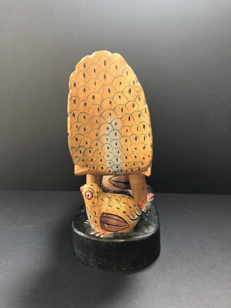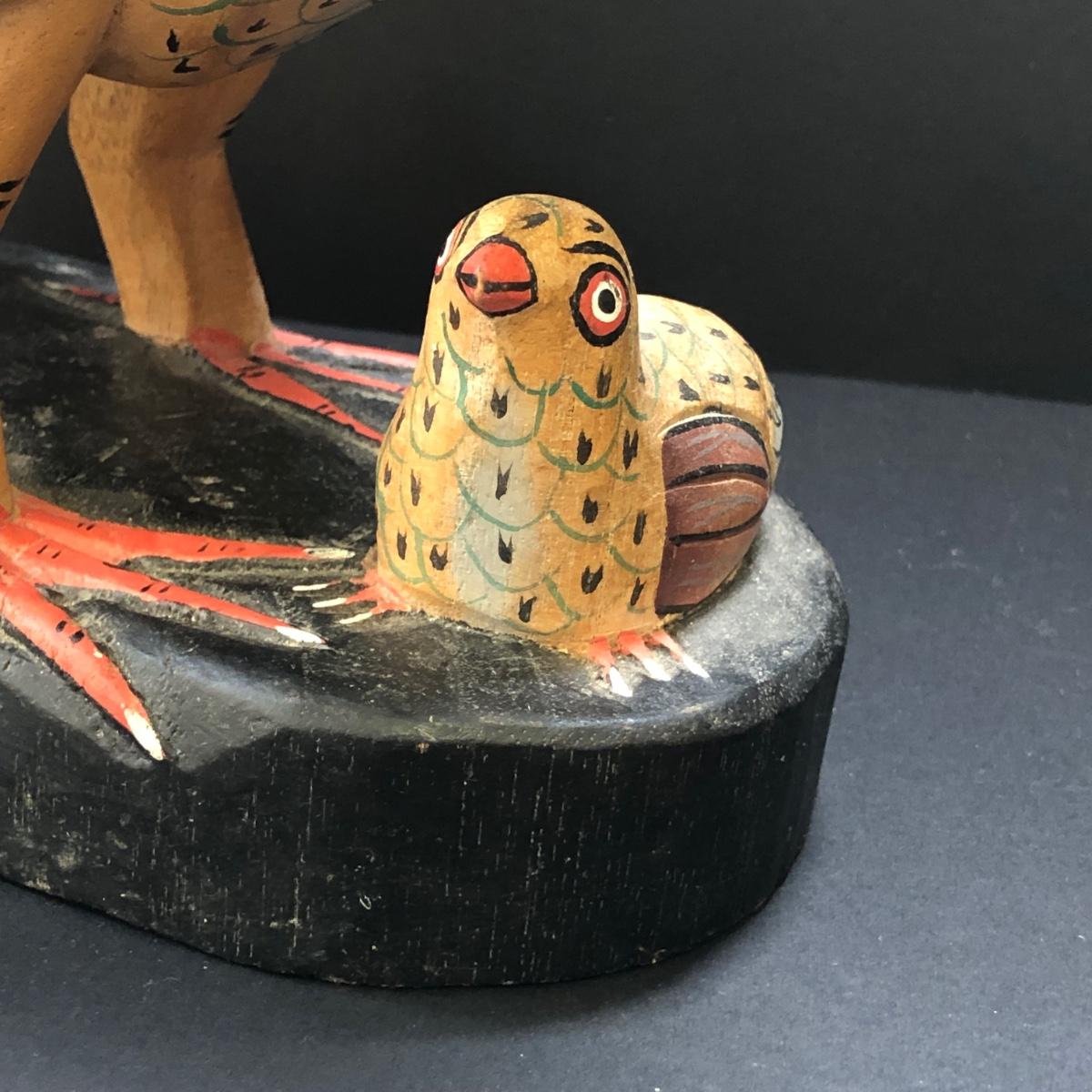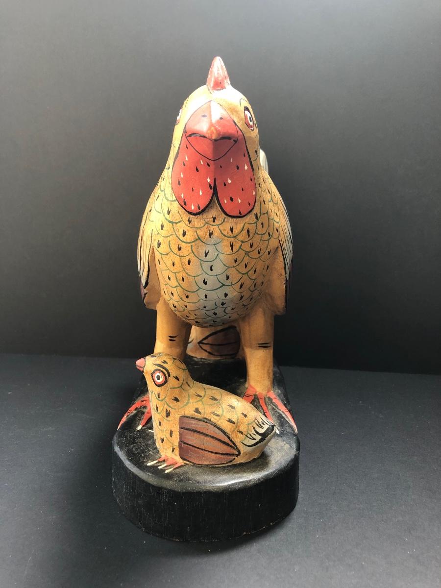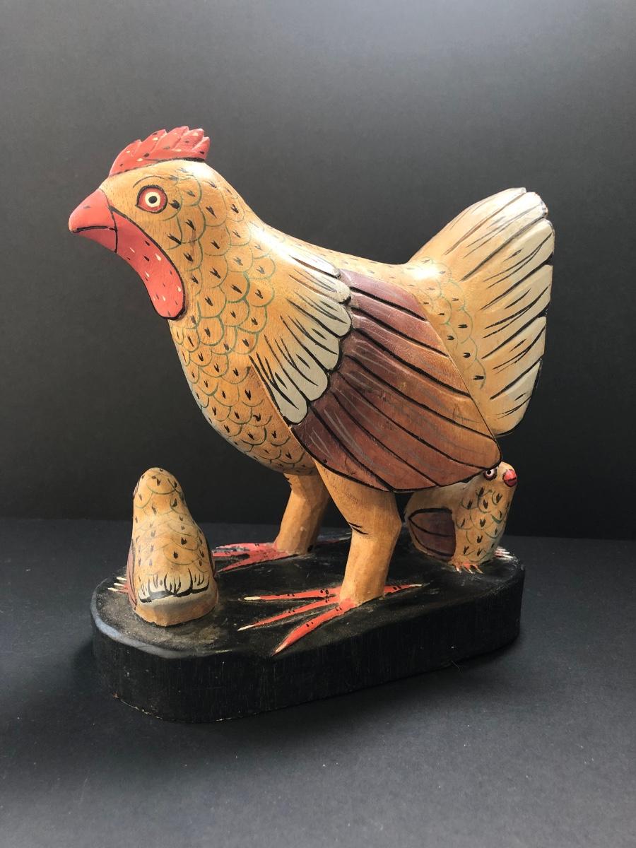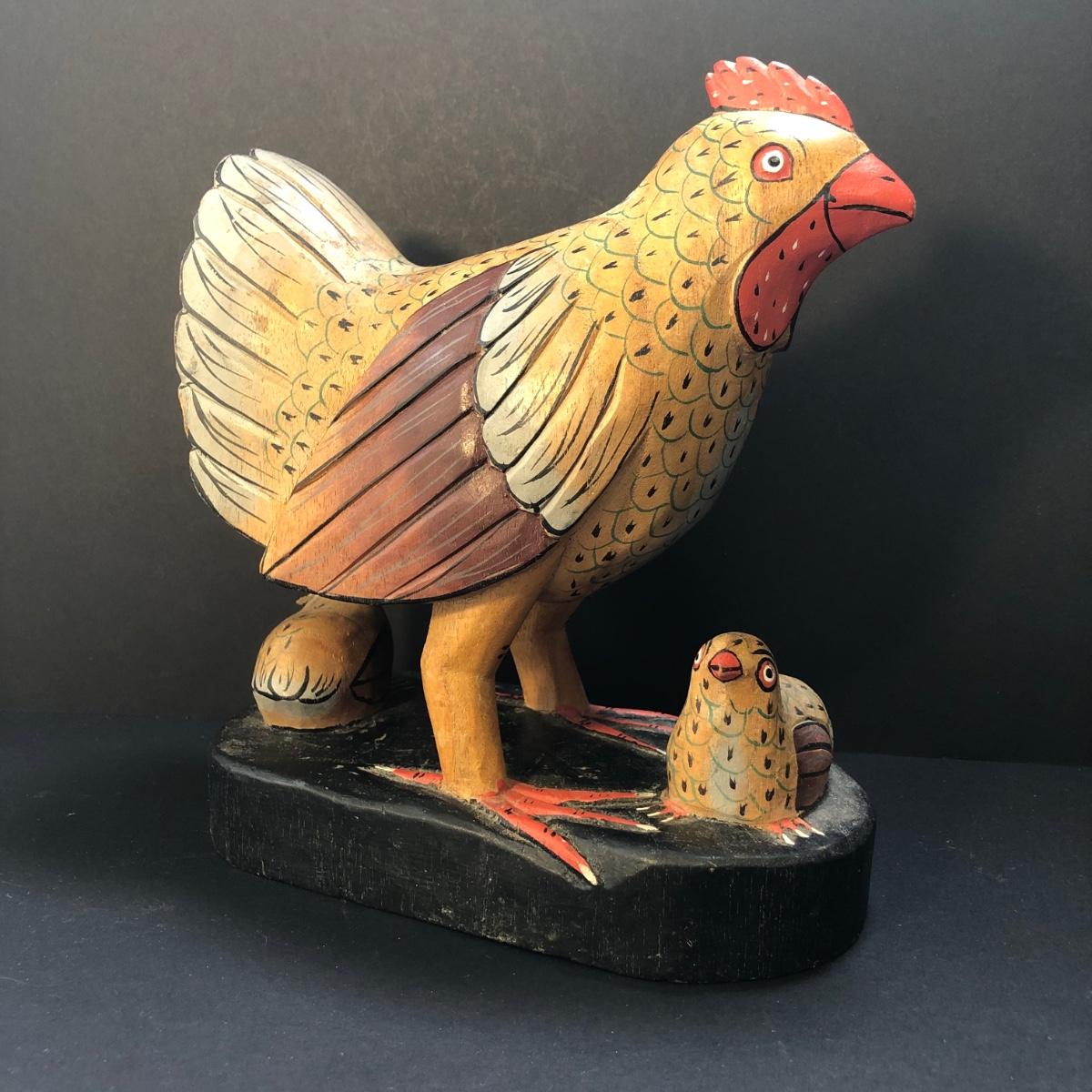 LOT73M: Carved Wooden Chicken w/ Chicks