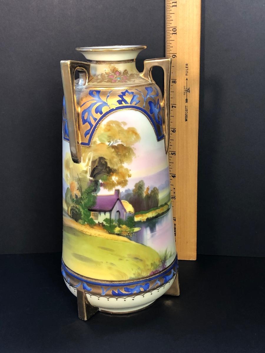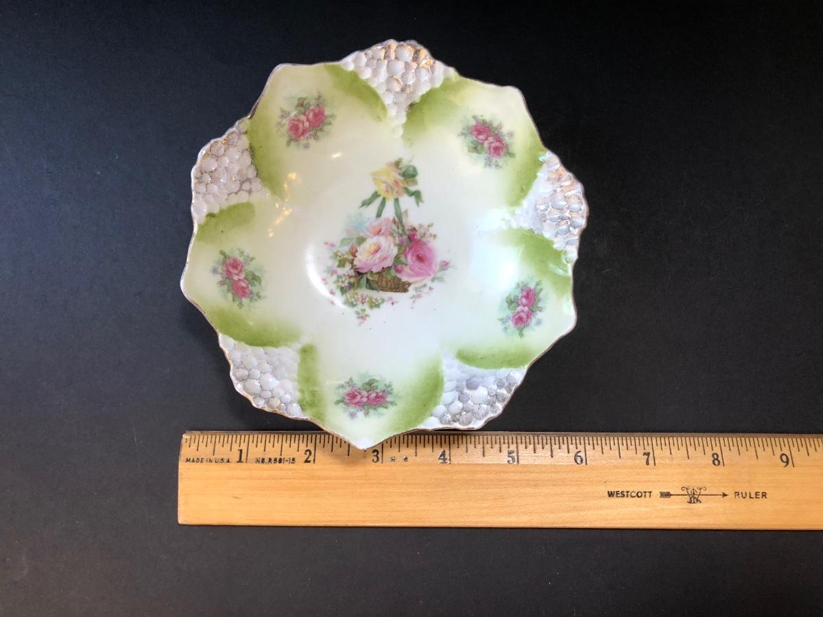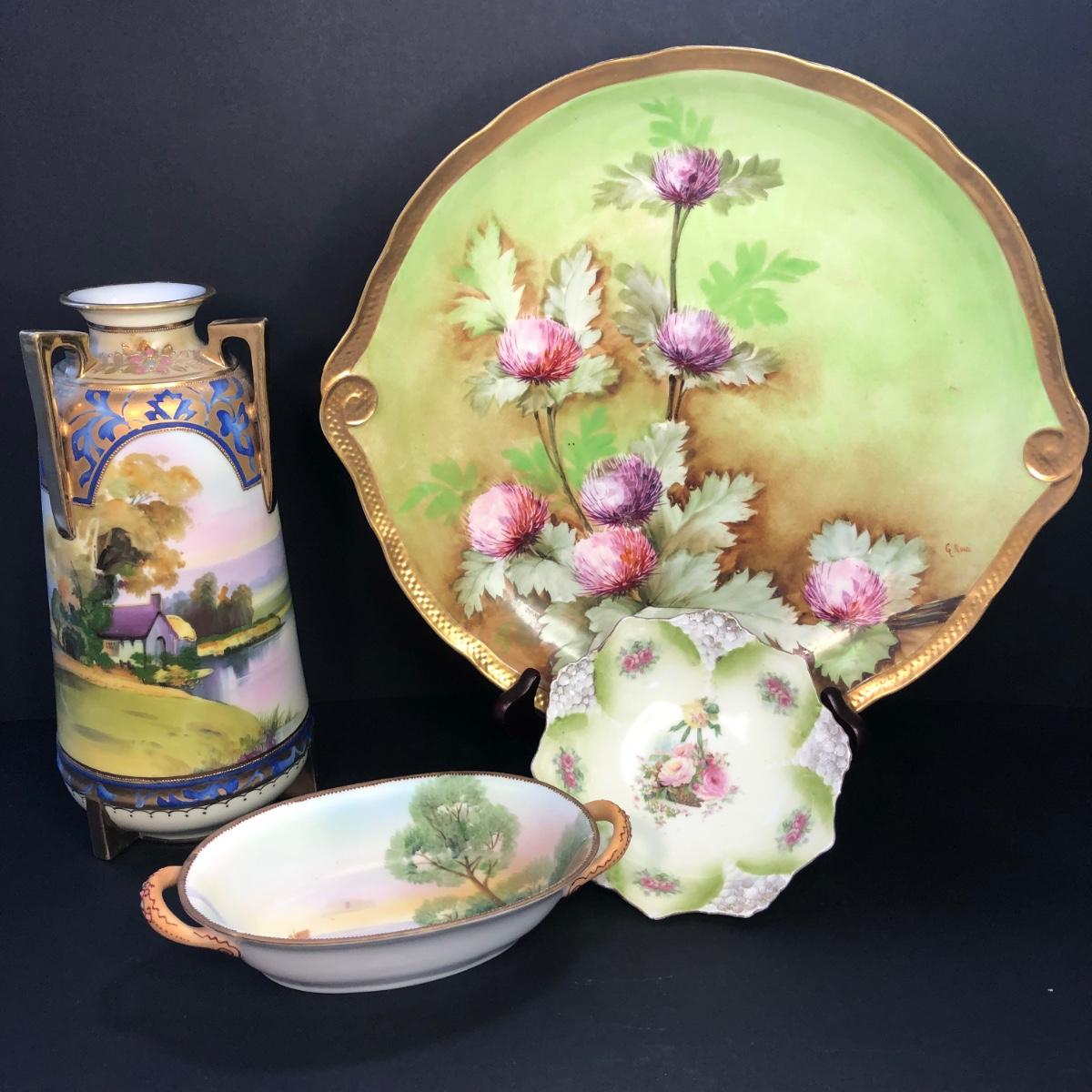 Includes a hand painted Nippon porcelain vase & dish, a hand painted plate from Italy, and a small floral dish marked "Prussia."