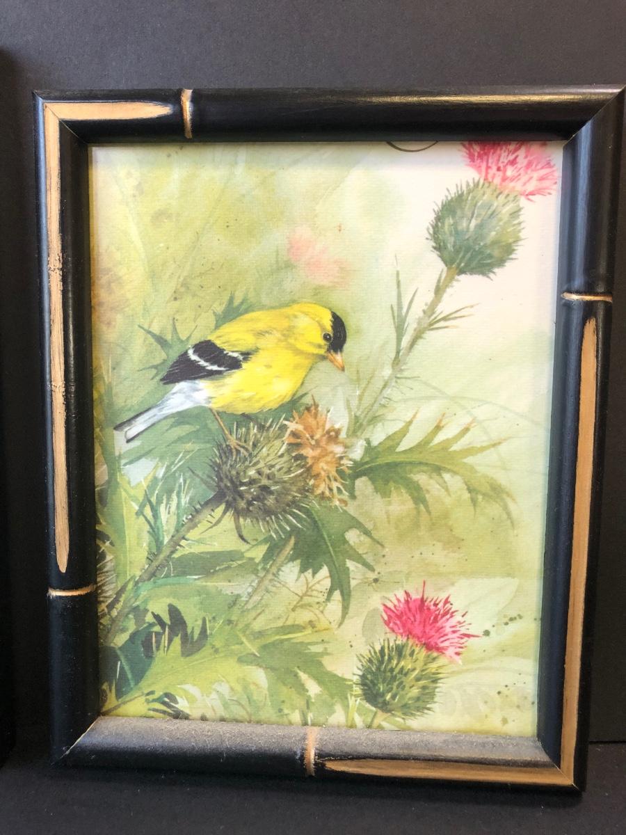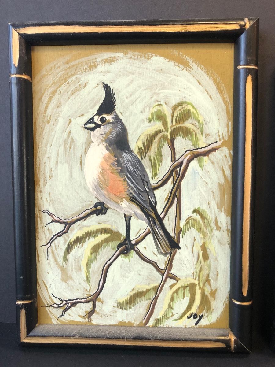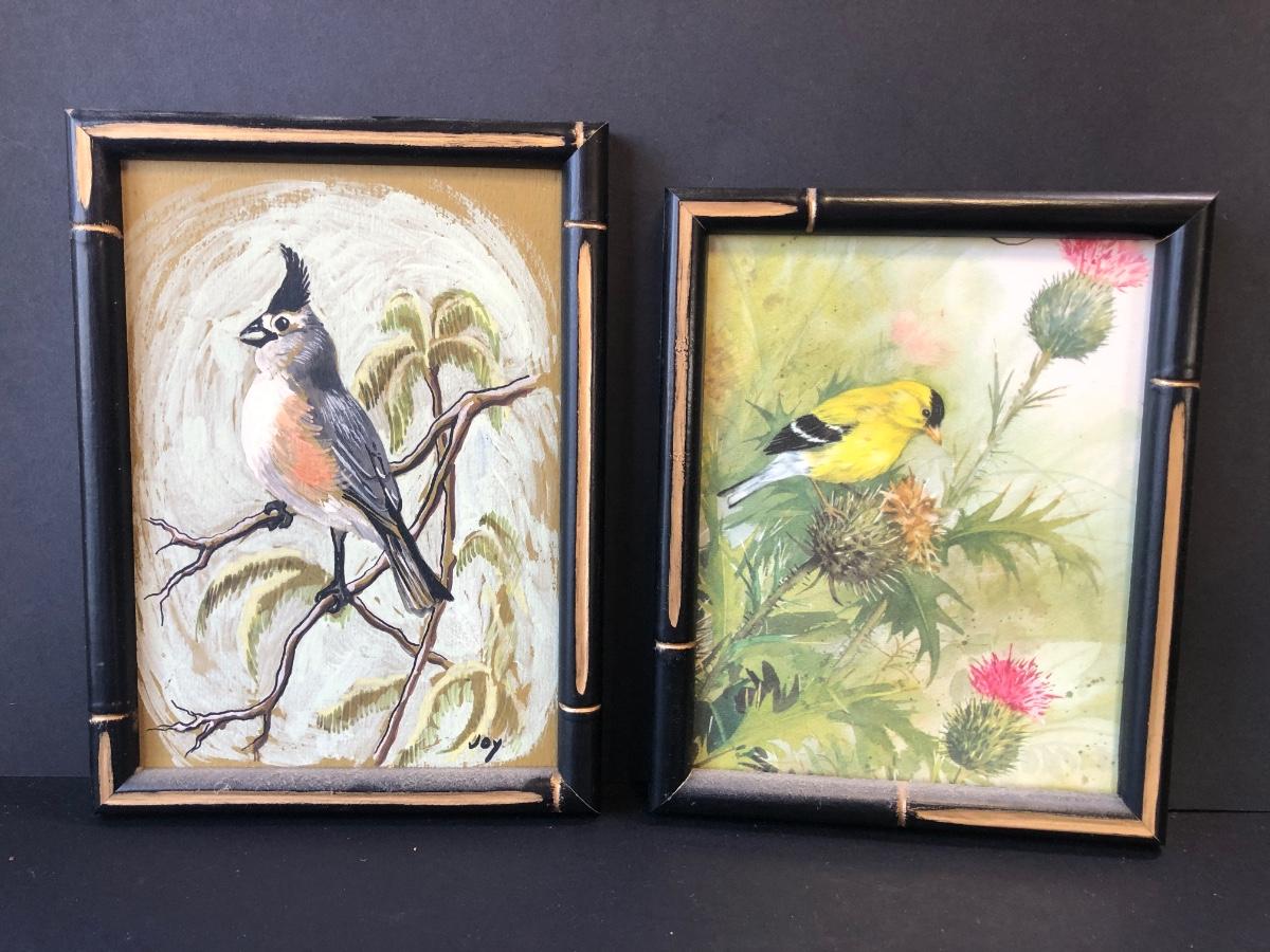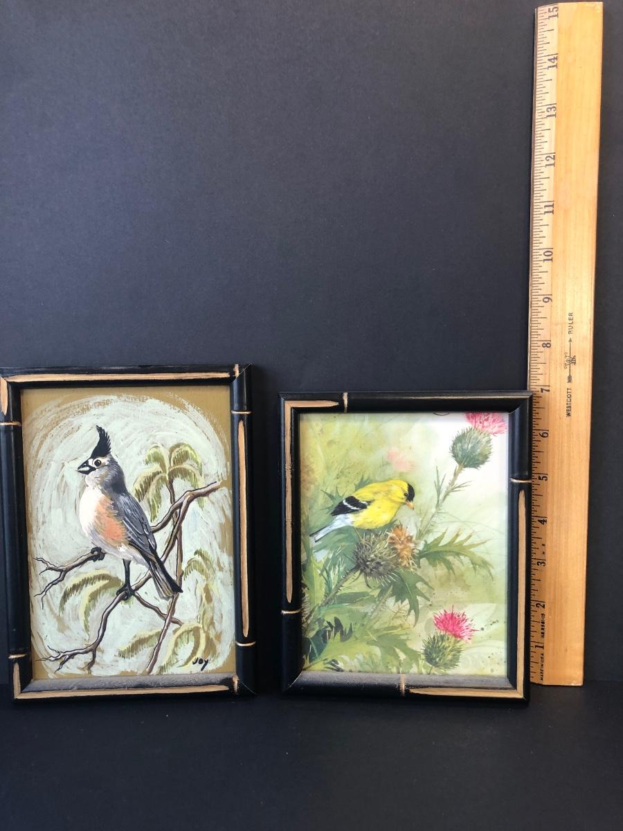 Also includes two framed bird prints, a small clock, a white and floral serving tray. The chest bib is labeled as being from the Ching dynasty in the 19th century and made with the "forbidden stitch."