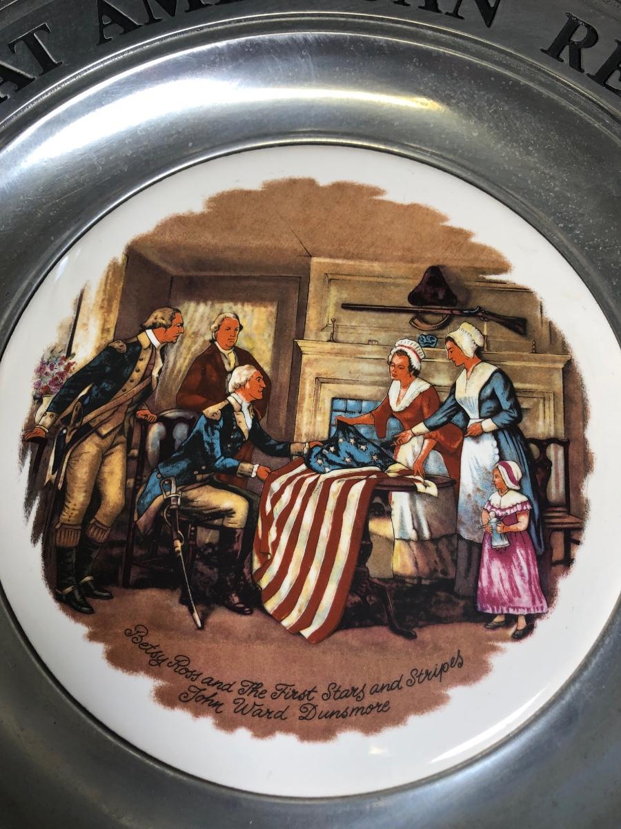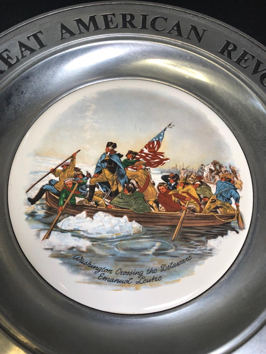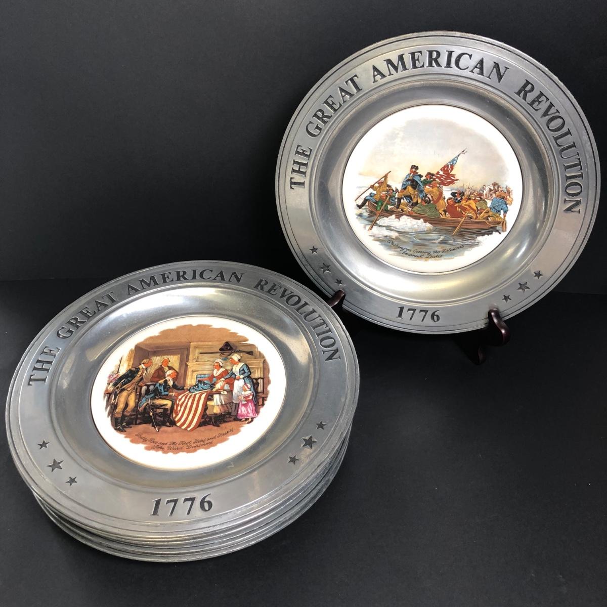 LOT88M: Vintage Canton 'The Great American Revolution' Patriotic Pewter Plates