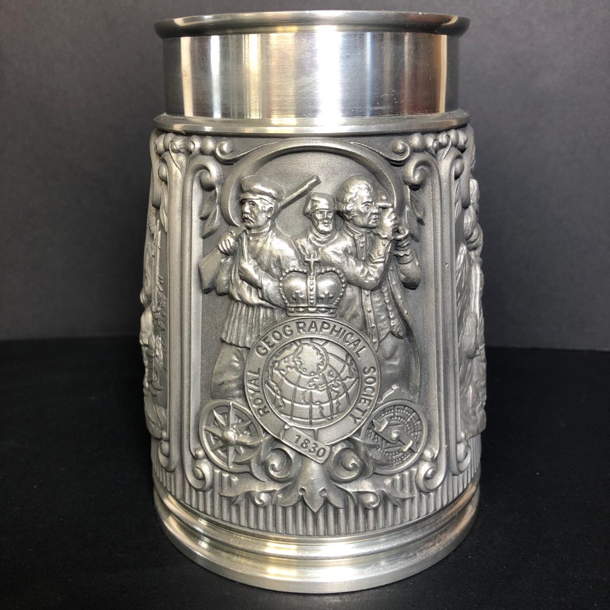 The Victory at Trafalgar Tankard was issued by the Maritime Trust of Great Britain commemorating the 175th anniversary of the Battle of Trafalgar in 1981. The Royal Geographical Society Sesquicentennial Tankard was issued in 1980.