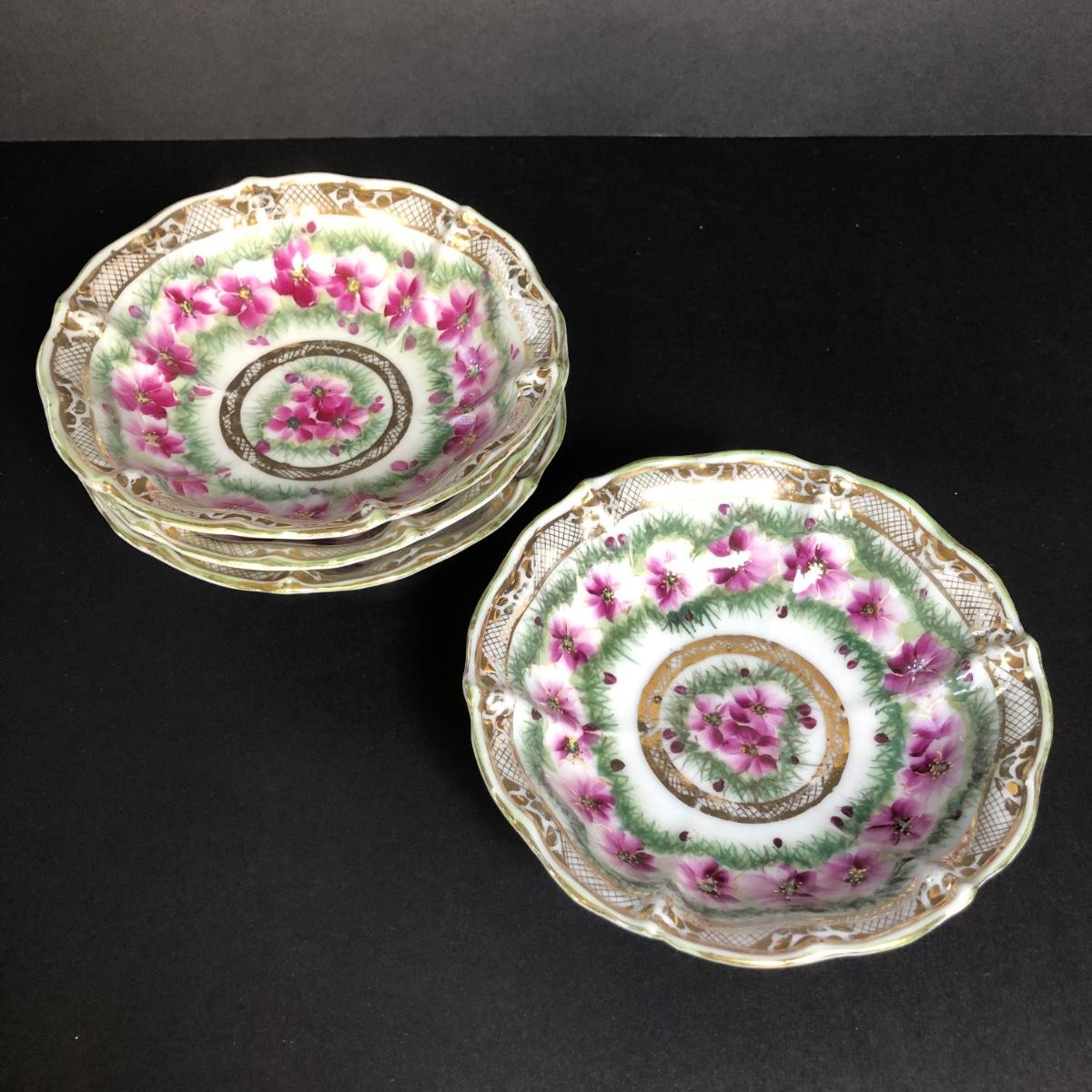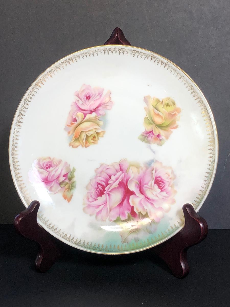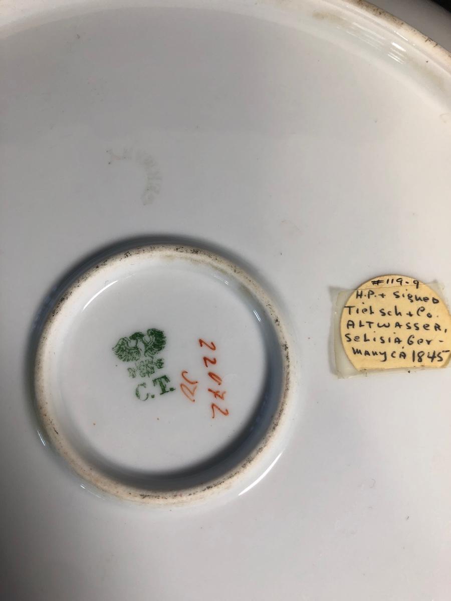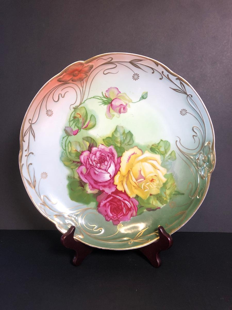 Includes four different decorative plates, three are from Germany one is hand painted and signed Two textured prints measure 6x7 inches. Two small dishes from France & Germany and a set of four small bowls.