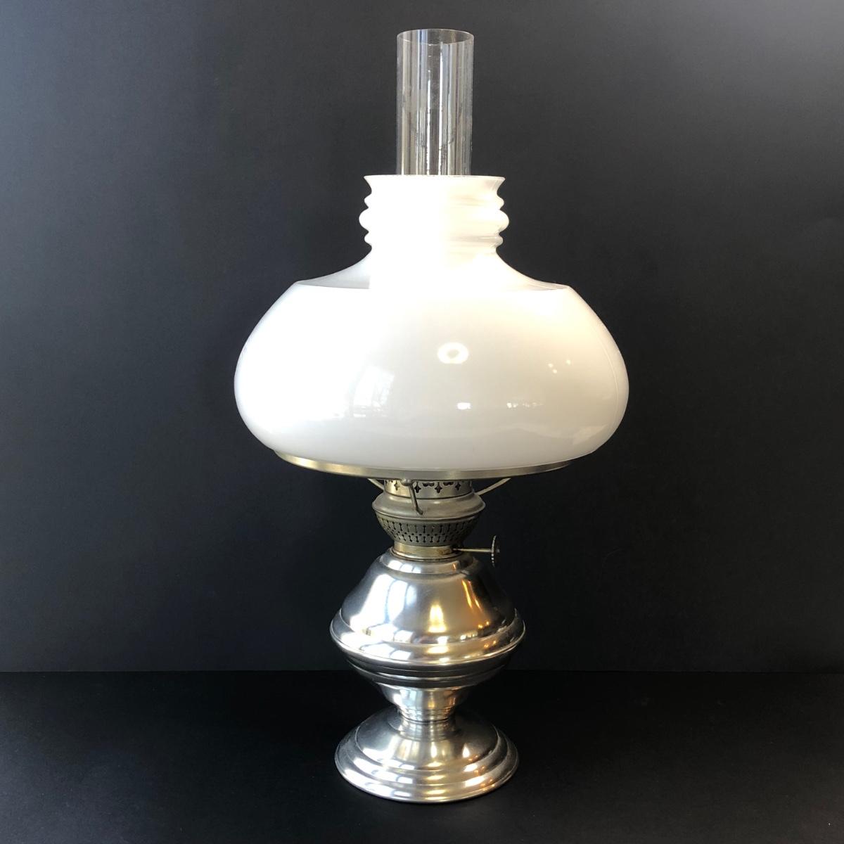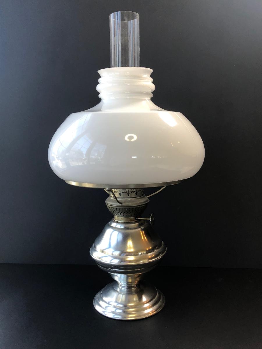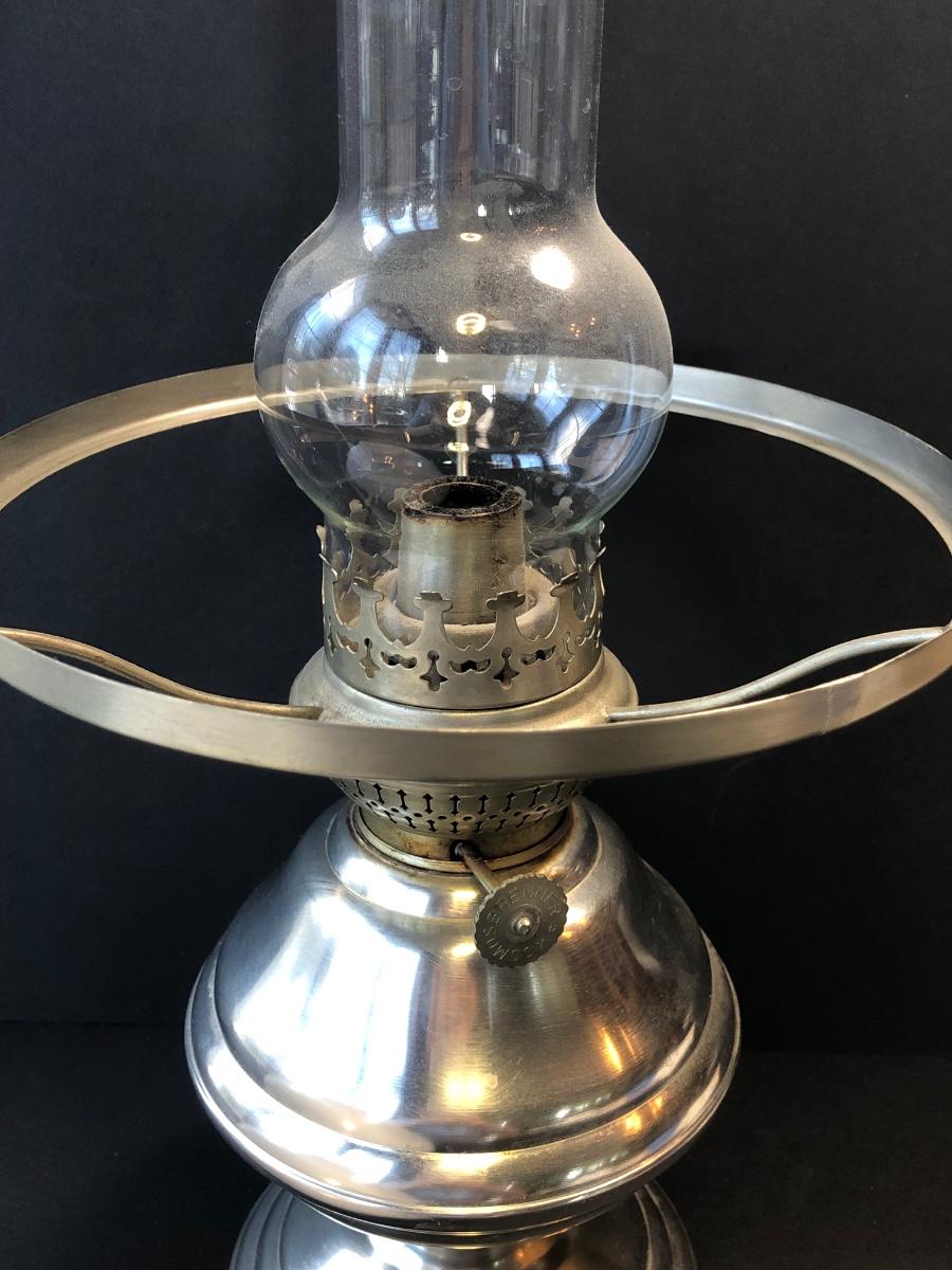 One hurricane style oil lamp. Clear glass is chipped slightly at the top (see photos).