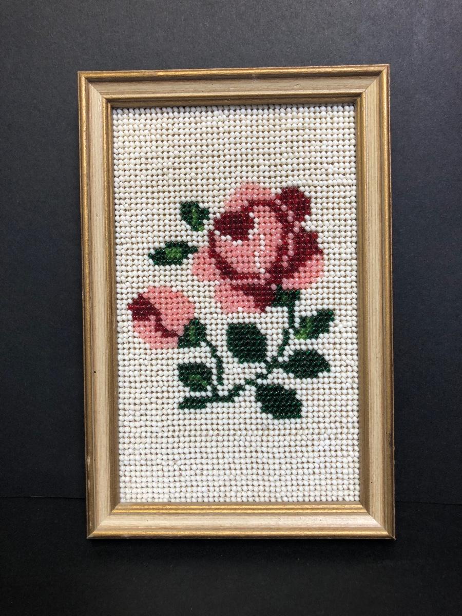 Also includes a beaded print of a flower and a plate from Germany. Bowl is hand decorated and made in Japan.
