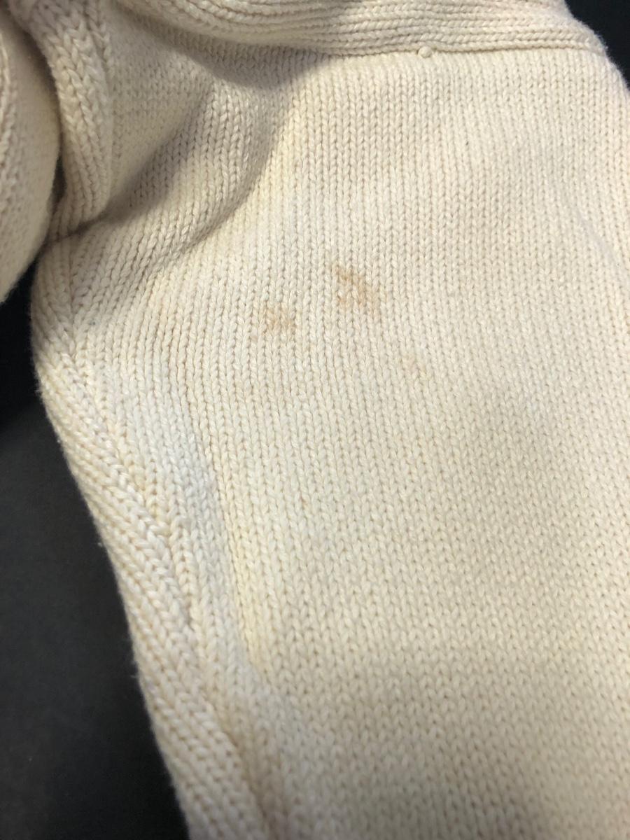 Sweaters have some stains (see photos). Jacket is in good condition with tags still on it, size Large. Sweaters are sized Large & Extra Large.