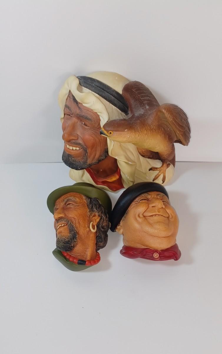 Set of 3 Bosson chalkware heads 1978. Some slight knicks in the paint