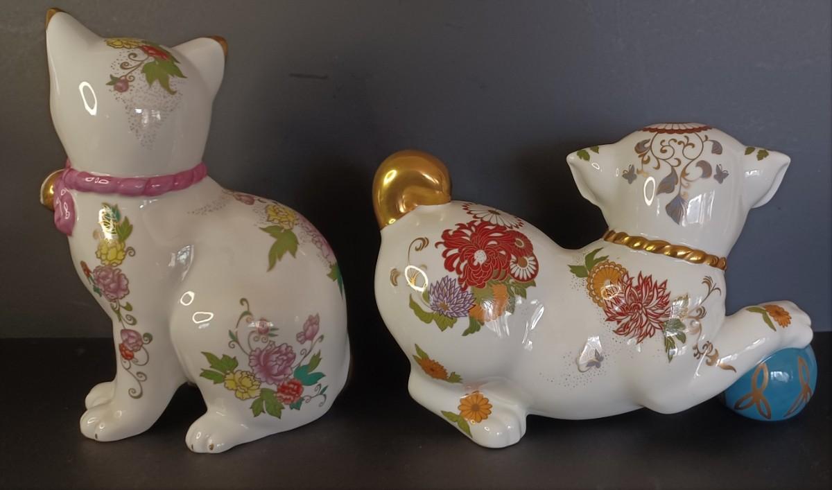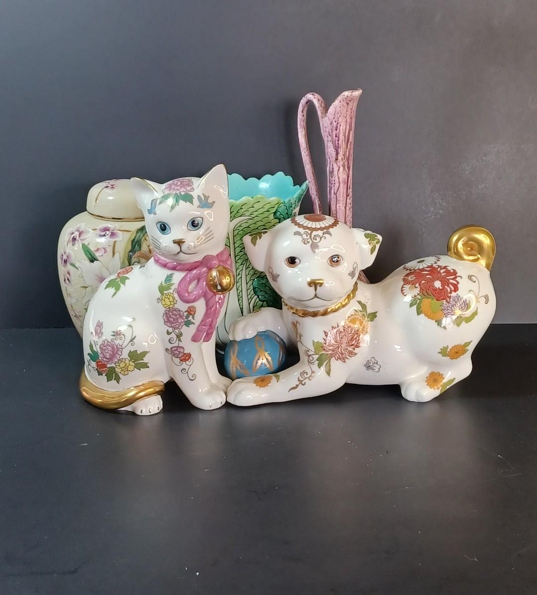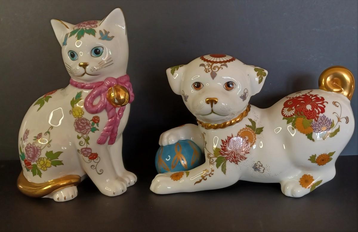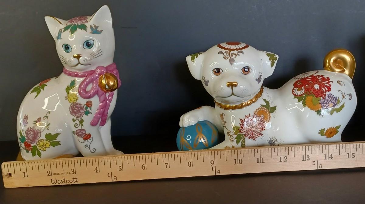 LOT112: Franklin Mint Imperial Puppy of Satsuma & Royal Kitten Of Prosperity Figurines & More