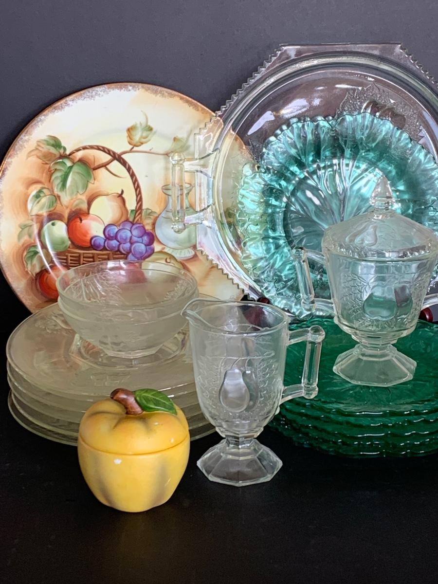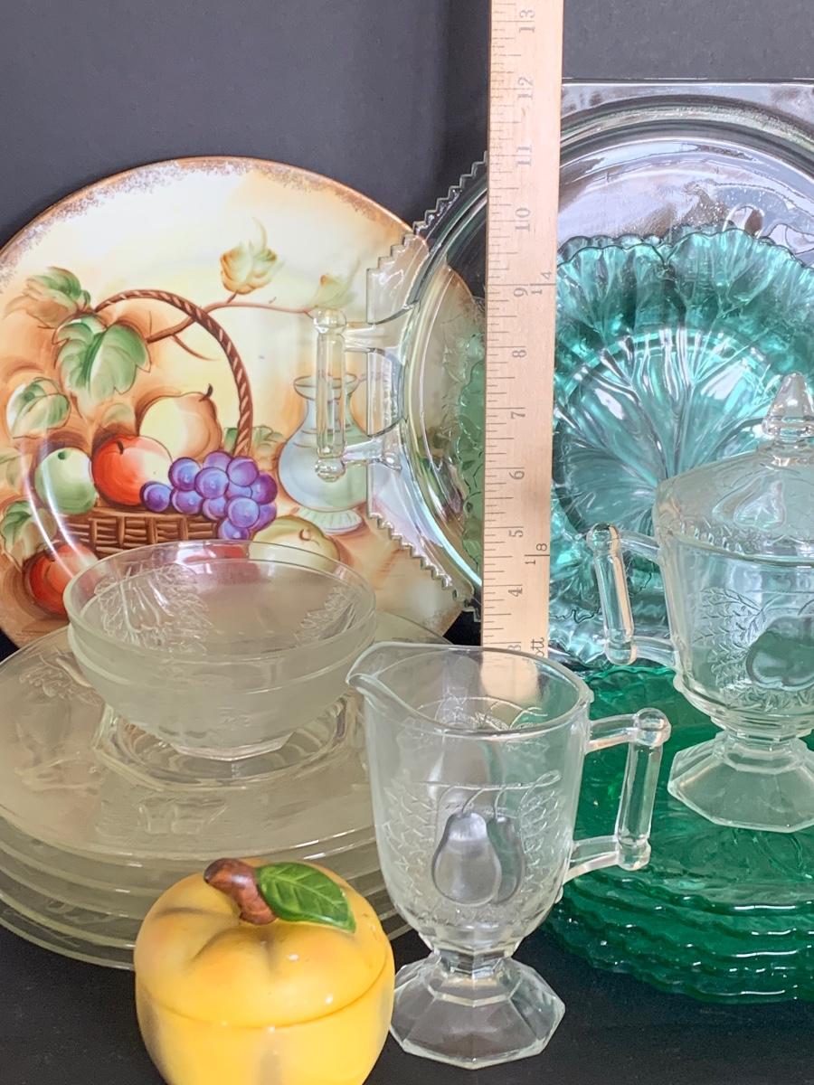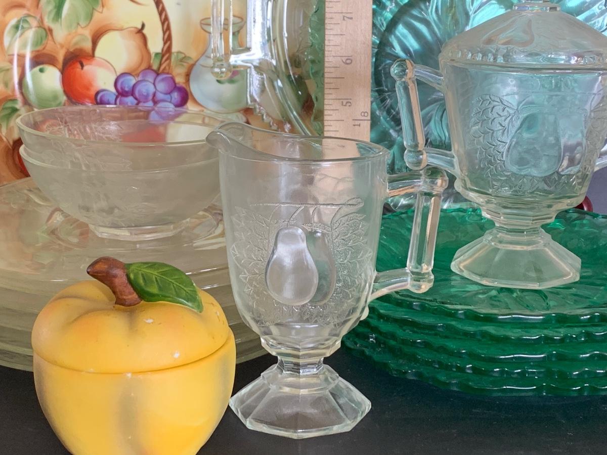 LOT 124R: Vintage Jeannette BALTIMORE PEAR Clear Salad Lunch Plates & Serving Pieces,Collectible Decorative Fruit Plates & More