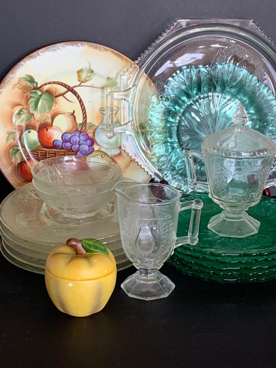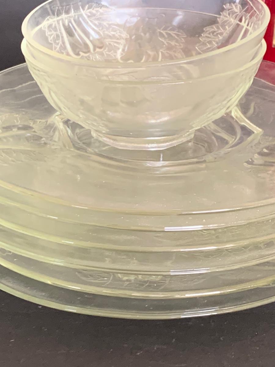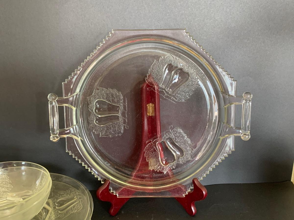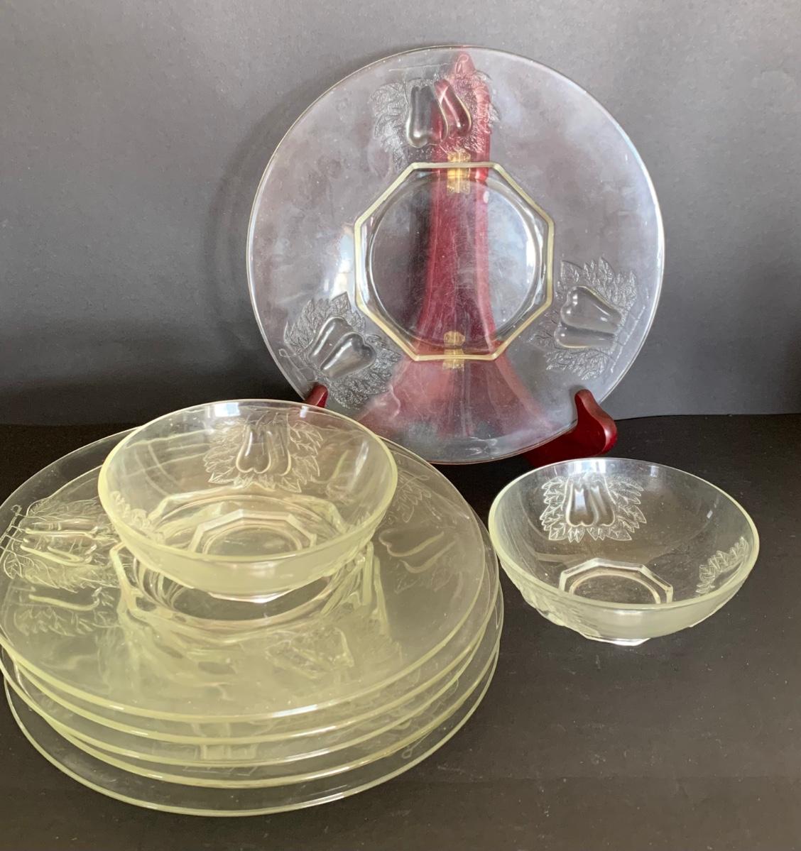 LOT 124R: Vintage Jeannette BALTIMORE PEAR Clear Salad Lunch Plates & Serving Pieces,Collectible Decorative Fruit Plates & More