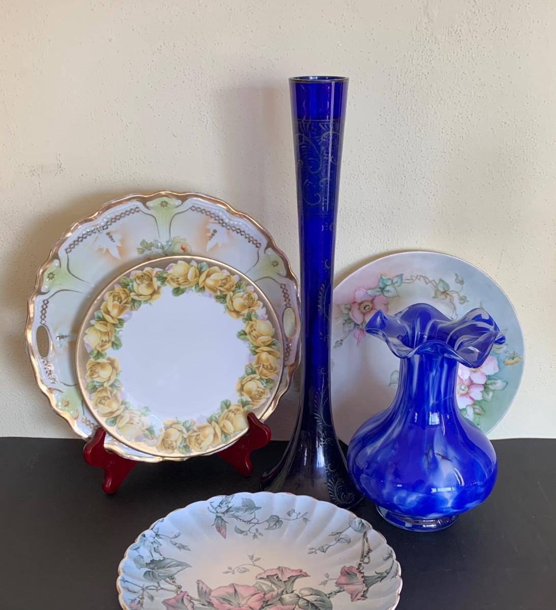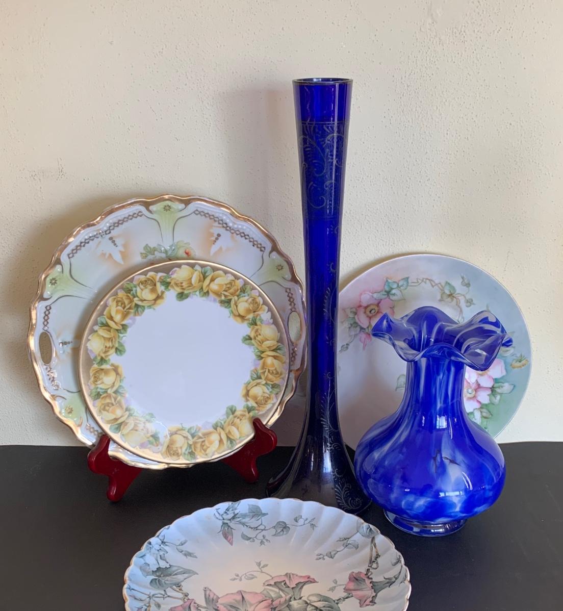 LOT 129R: Vintage Floral Decorative Plates & Vases