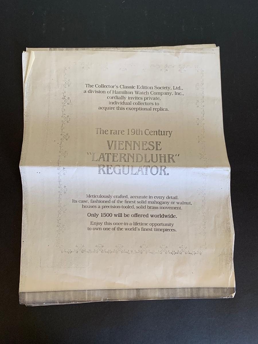LOT 131R: Hamilton  Viennese Laterndluhr Regulator Clock