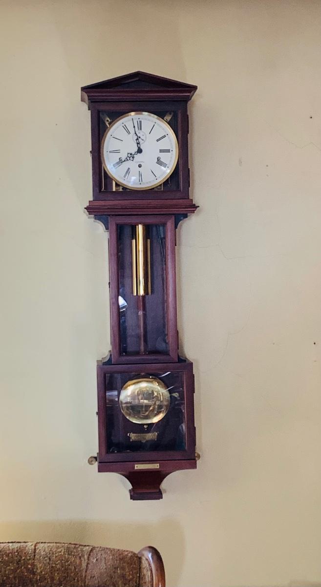 This is a beautiful working clock, as the pictures do not it any justice. It was made especially for our client, is number and has original paper work.