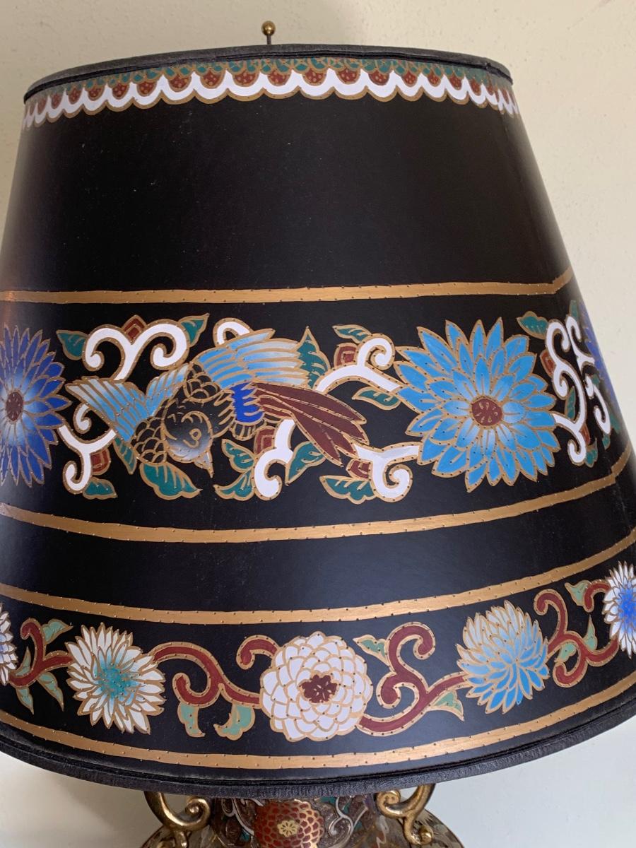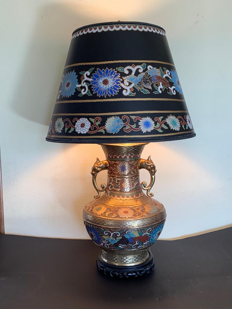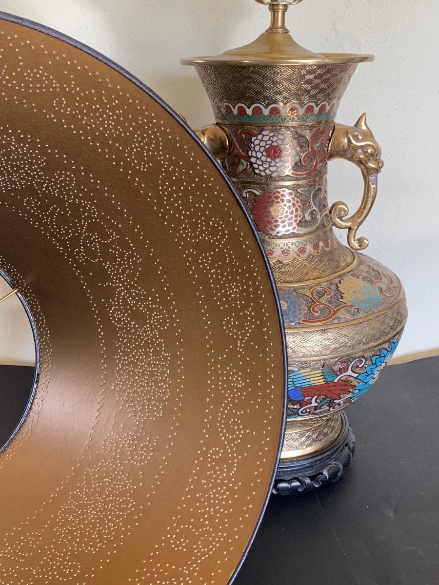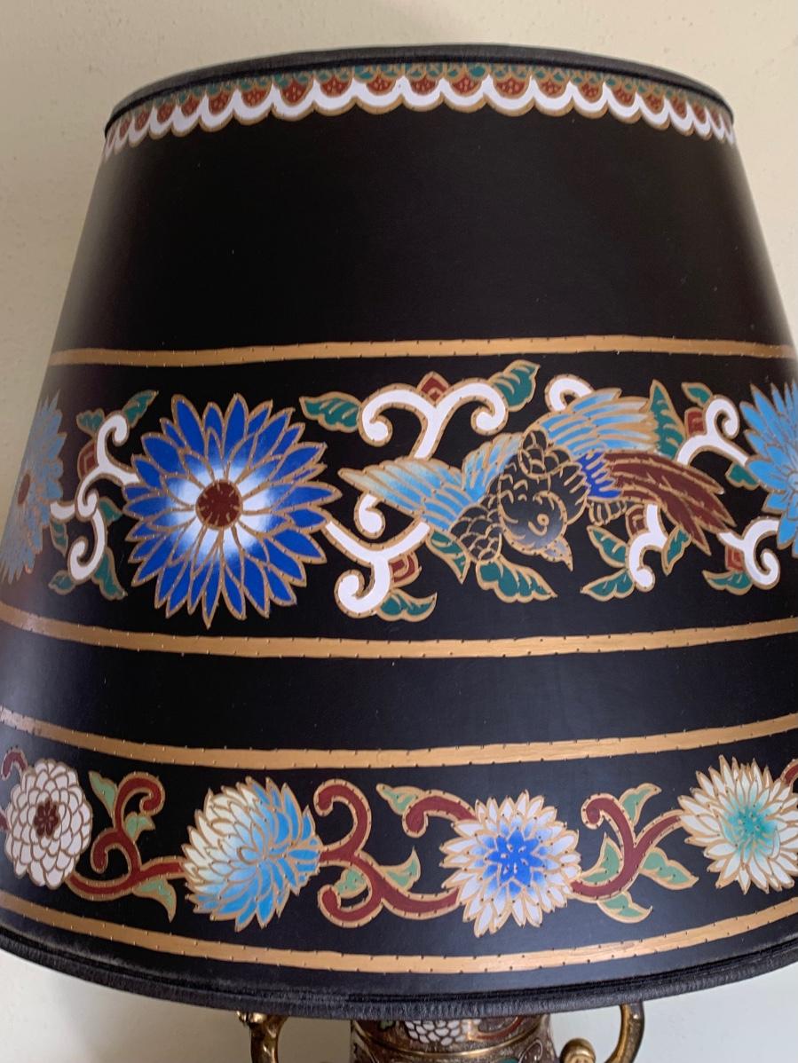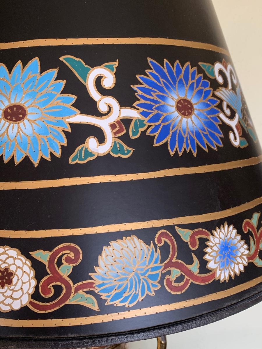 LOT 132R: Enamel & Brass Lamp w/Matching Punched Lamp Shade
