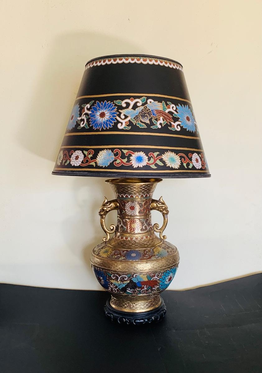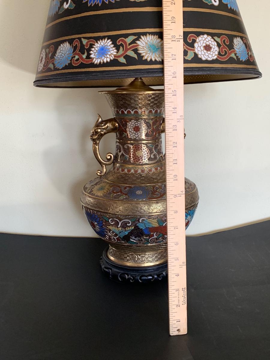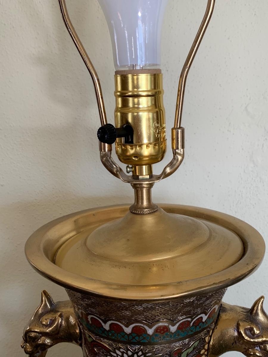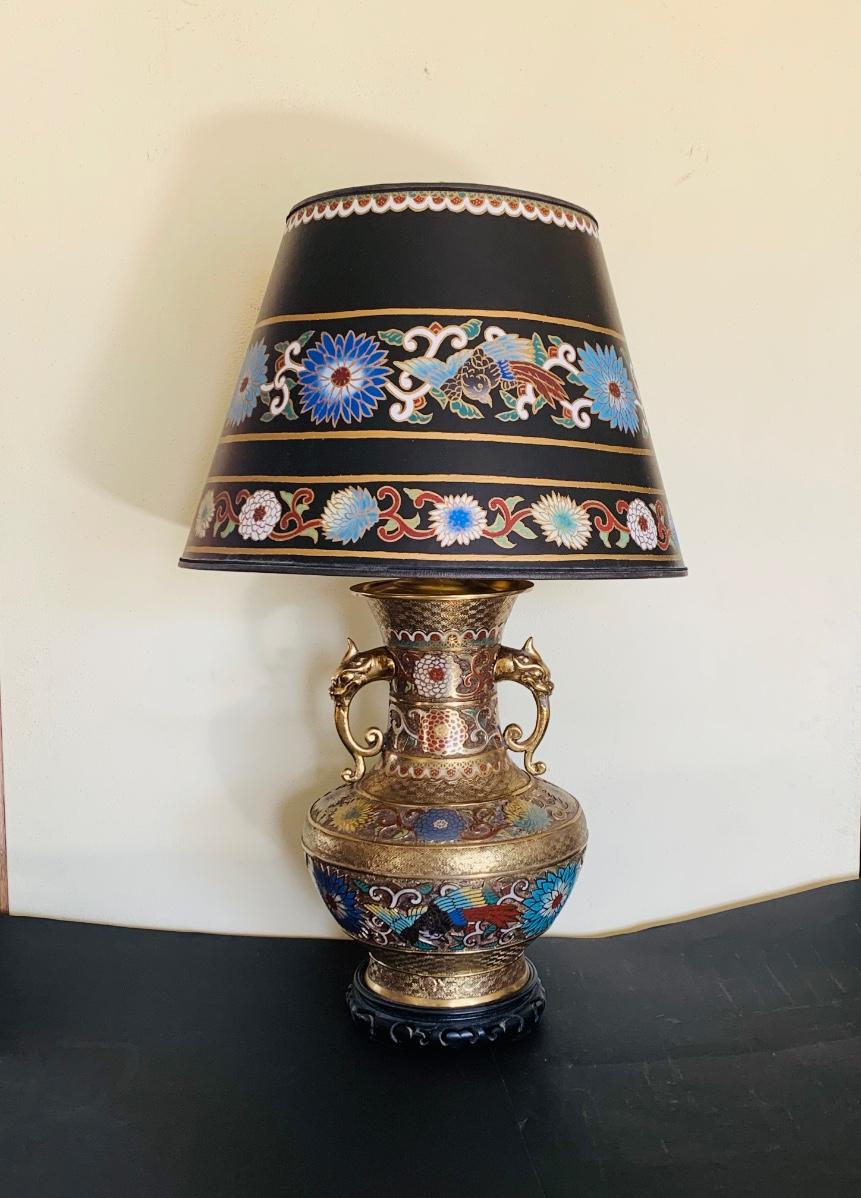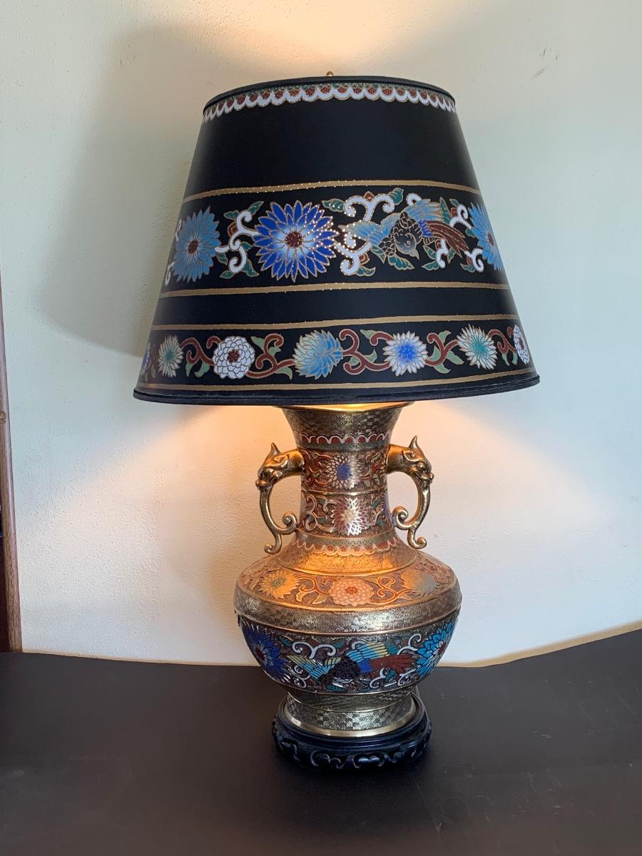 LOT 132R: Enamel & Brass Lamp w/Matching Punched Lamp Shade
