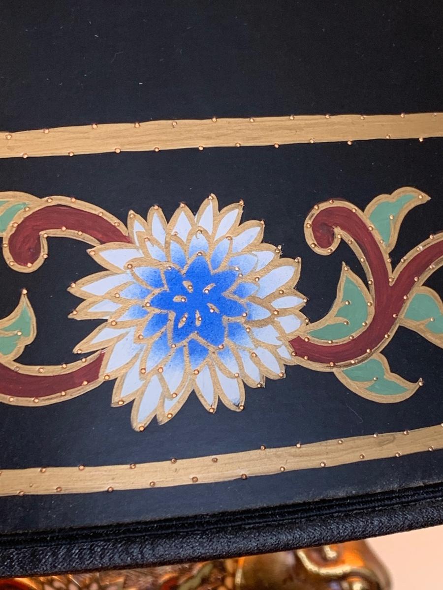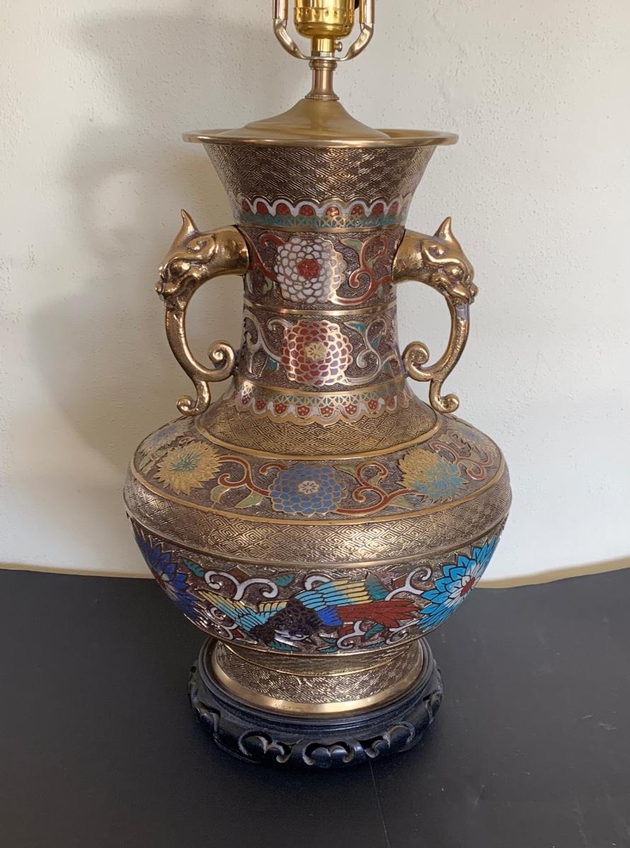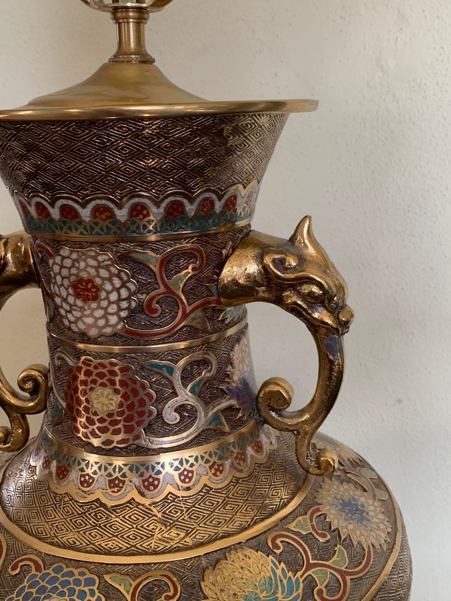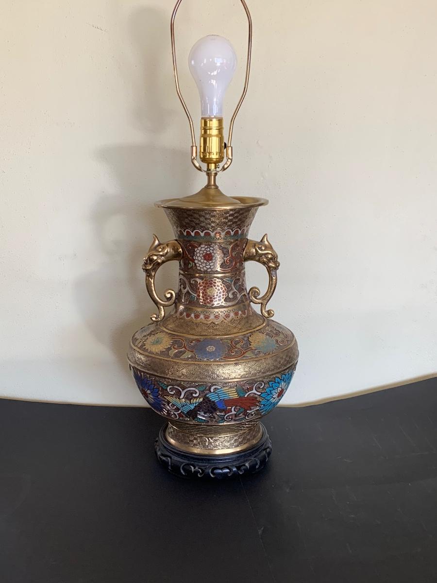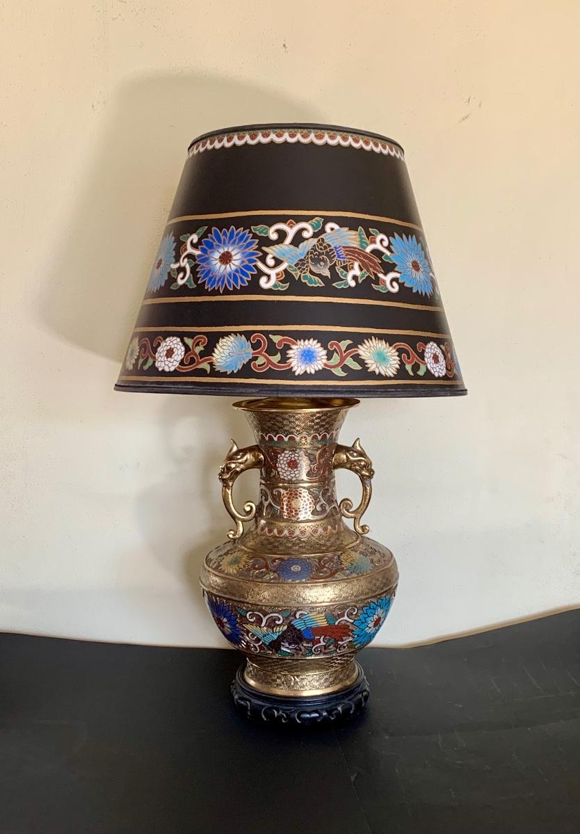 LOT 132R: Enamel & Brass Lamp w/Matching Punched Lamp Shade
