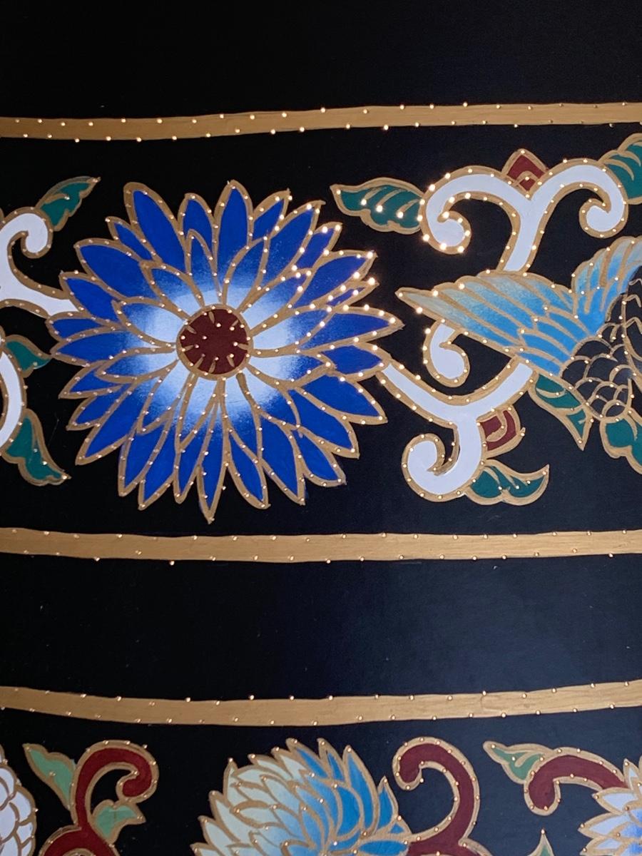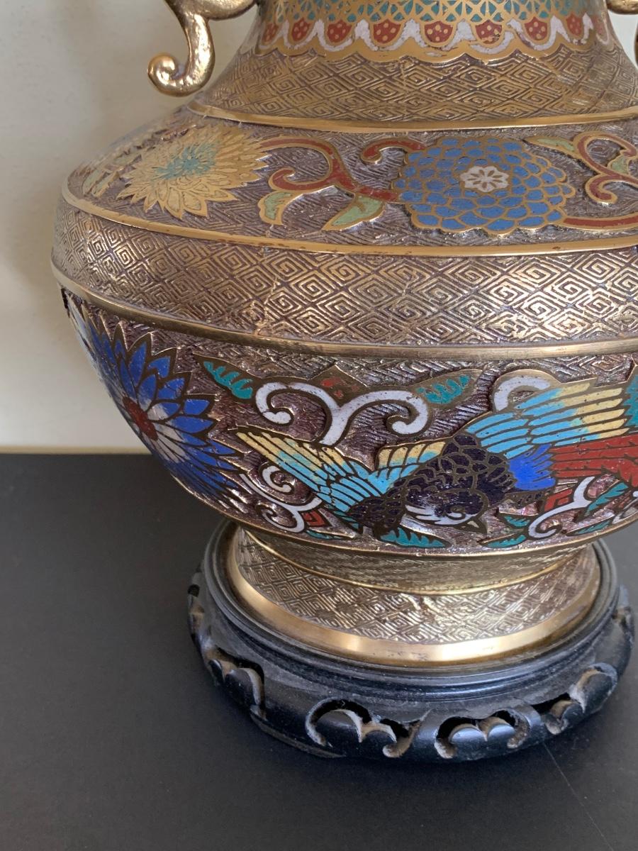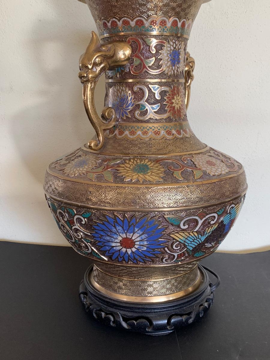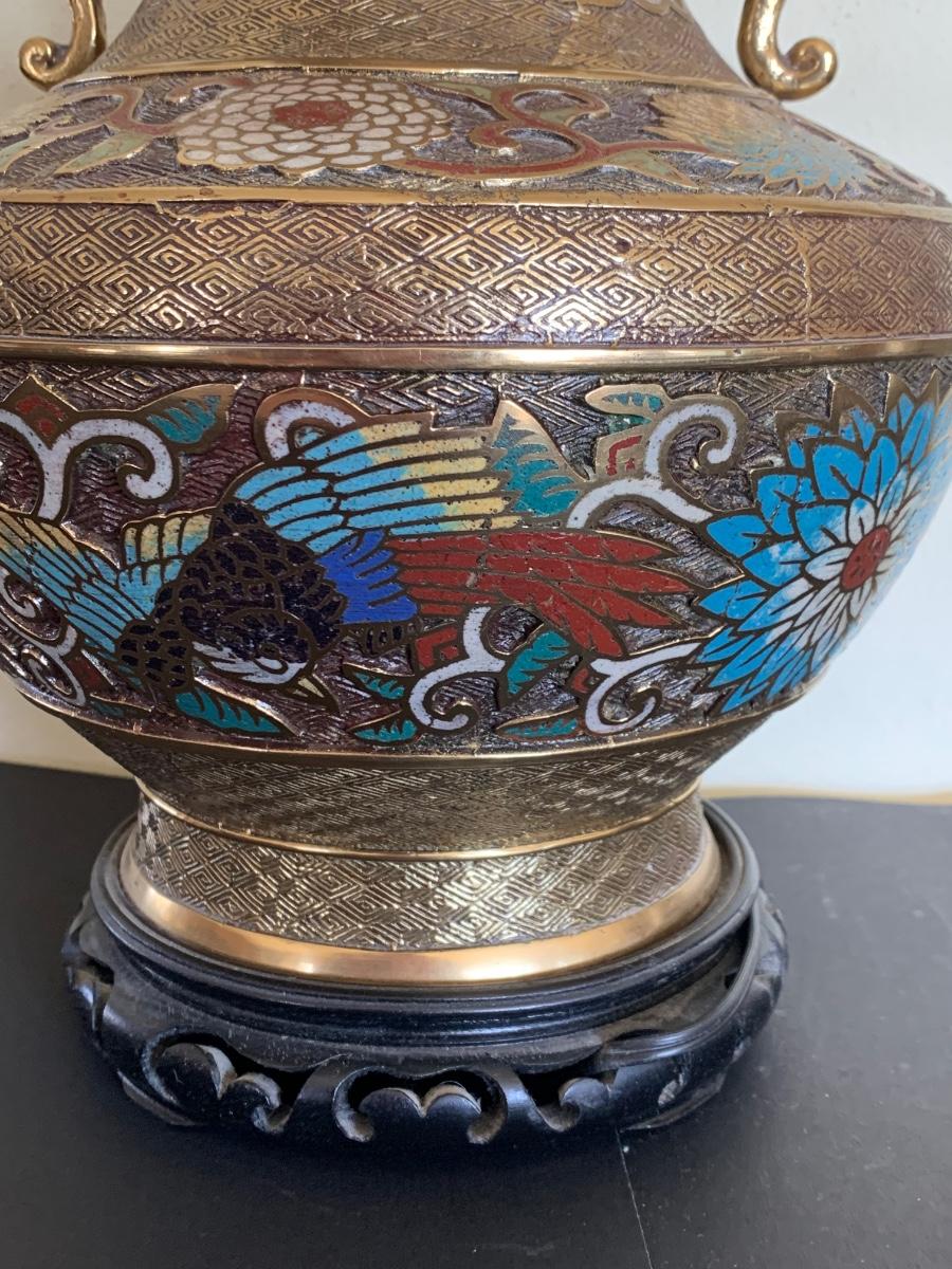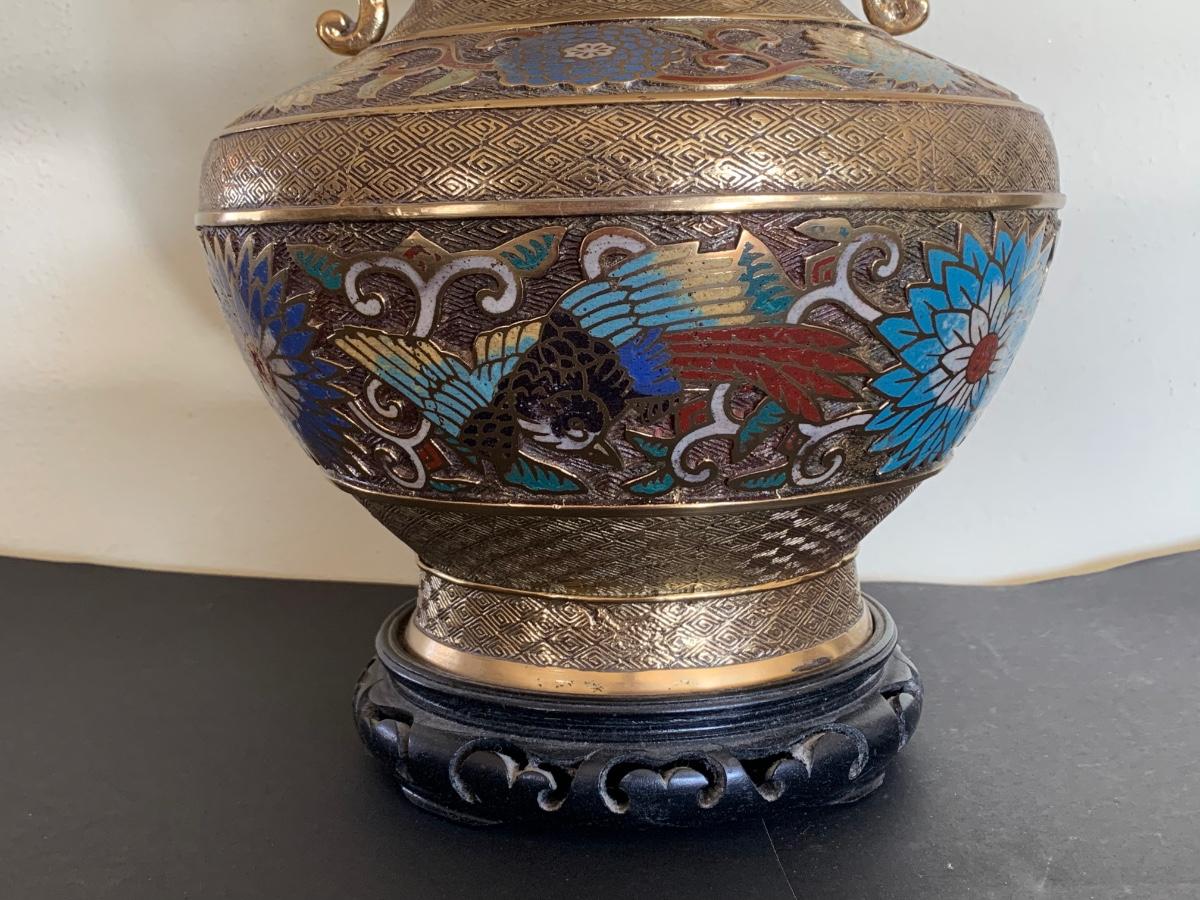 LOT 132R: Enamel & Brass Lamp w/Matching Punched Lamp Shade