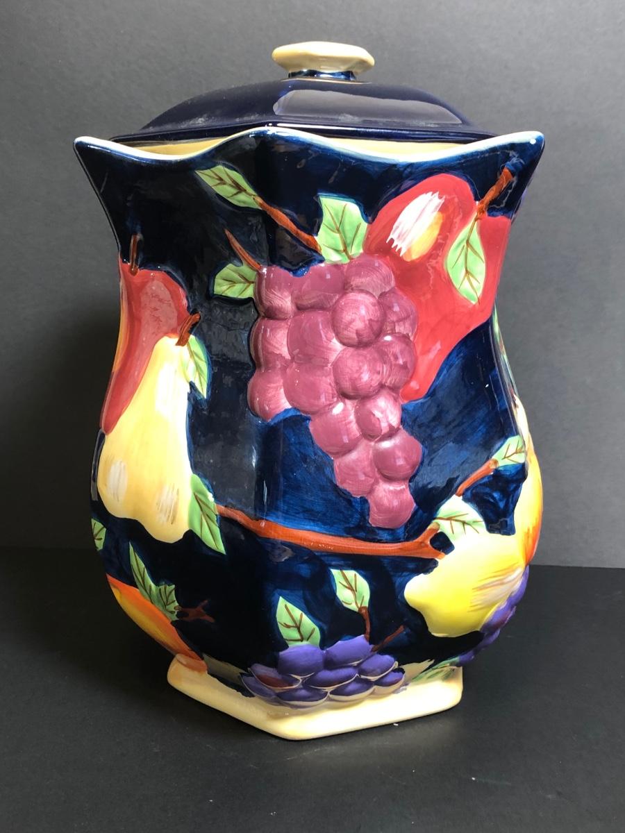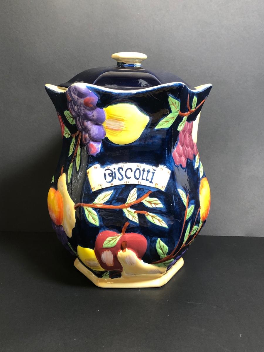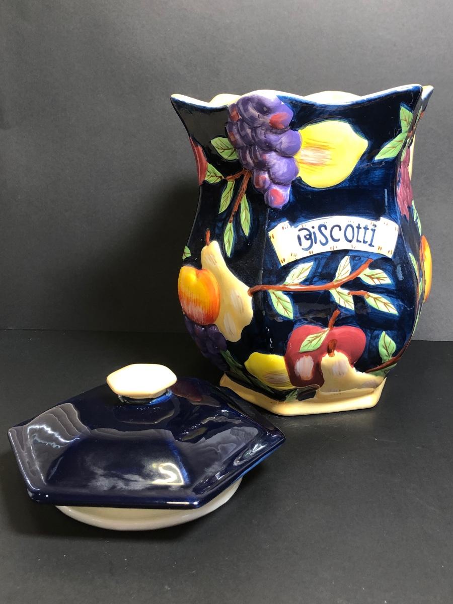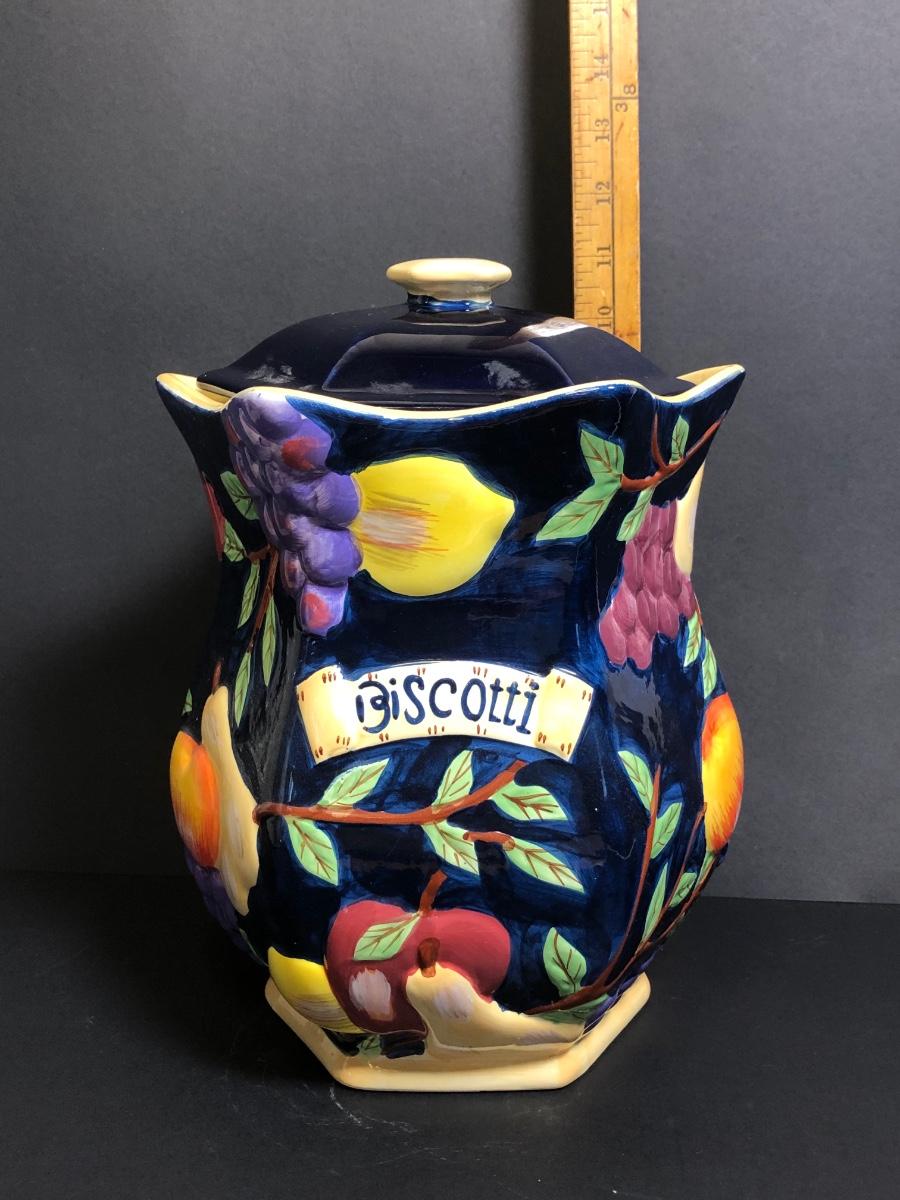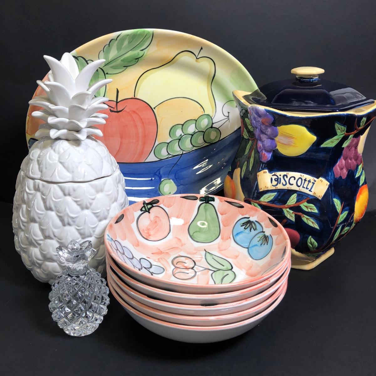 LOT142M: Hand Painted Biscotti Jar, Fruit Bowls, Pineapple Cookie Jar & More