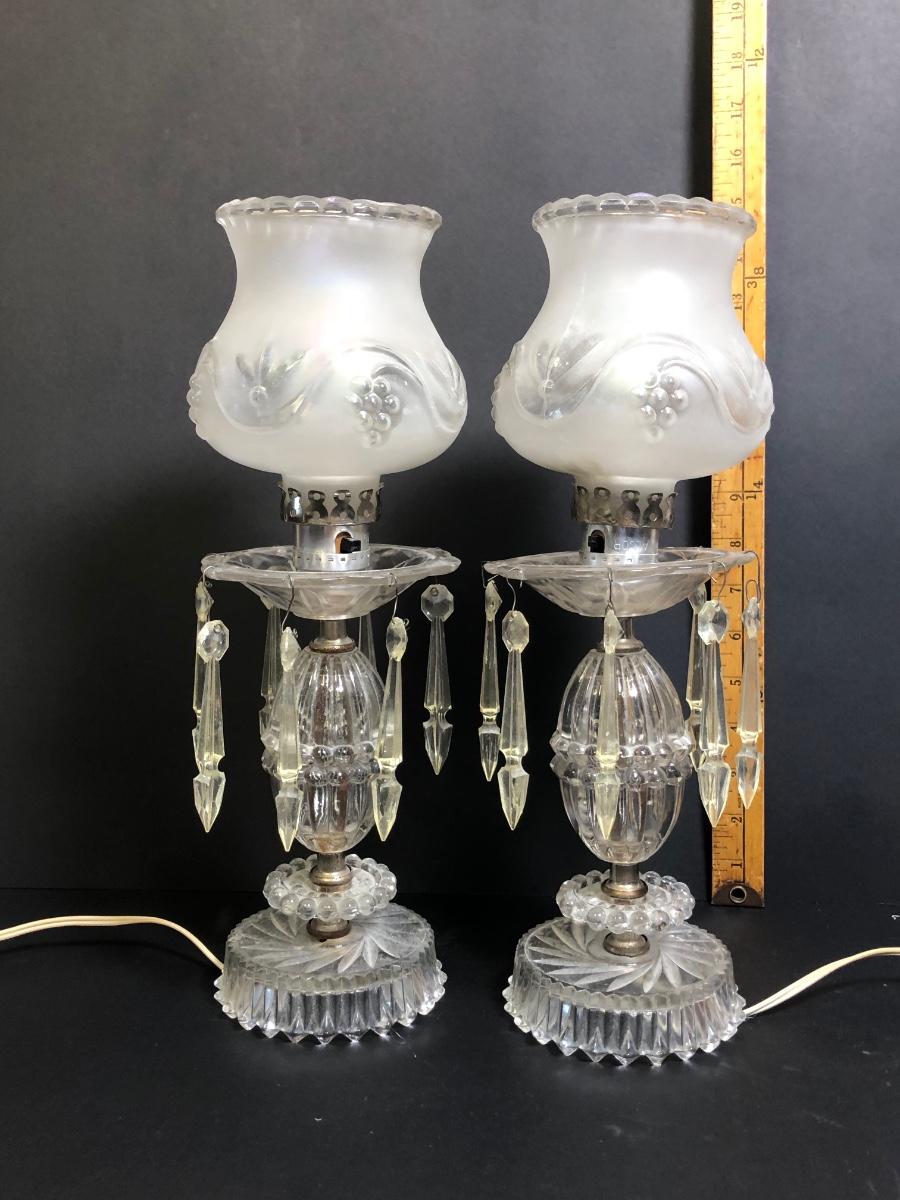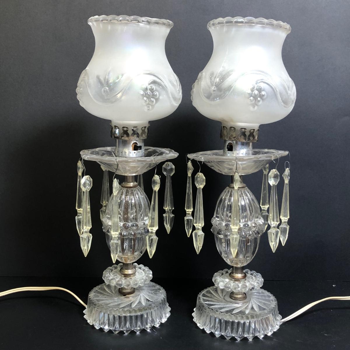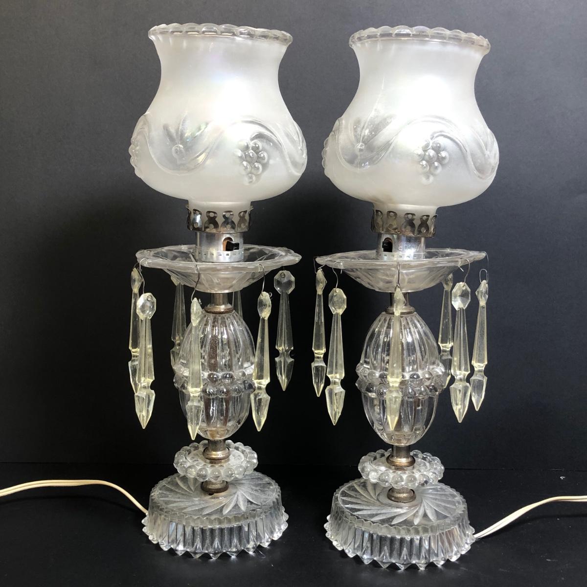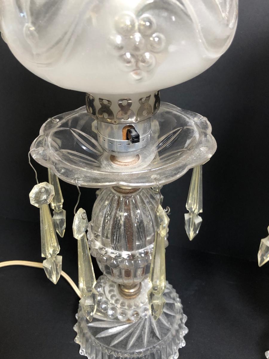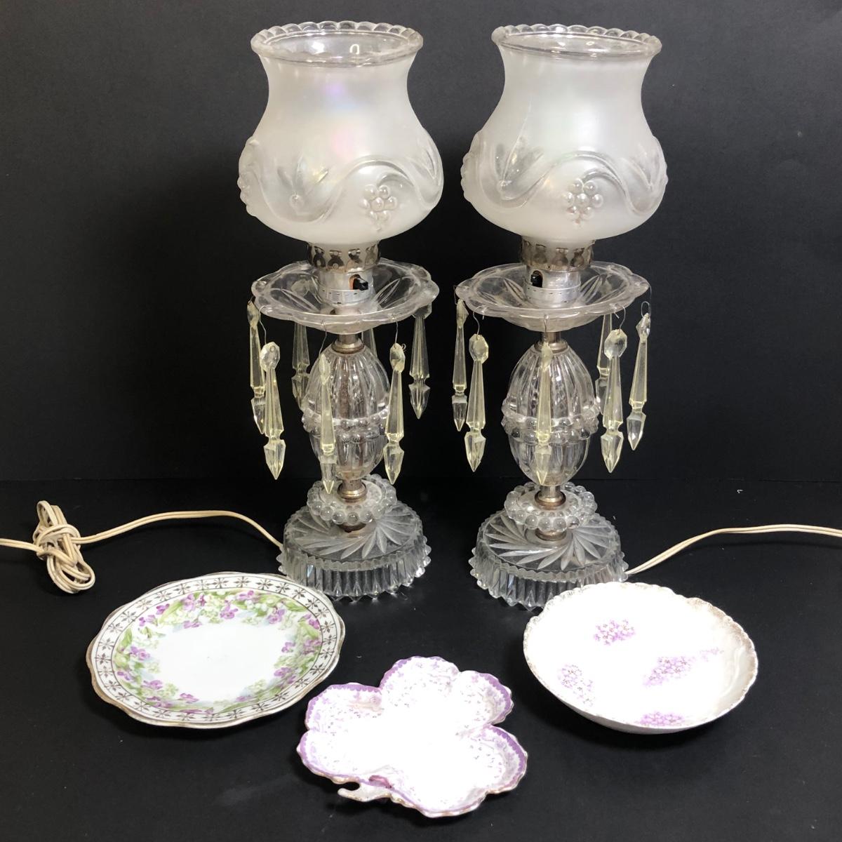 LOT148M: Glass Lamps w/ Plastic Crystals & Small Decorative Plates
