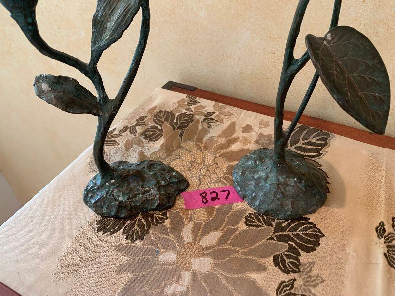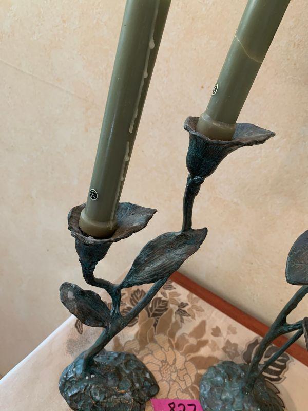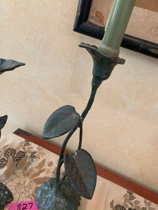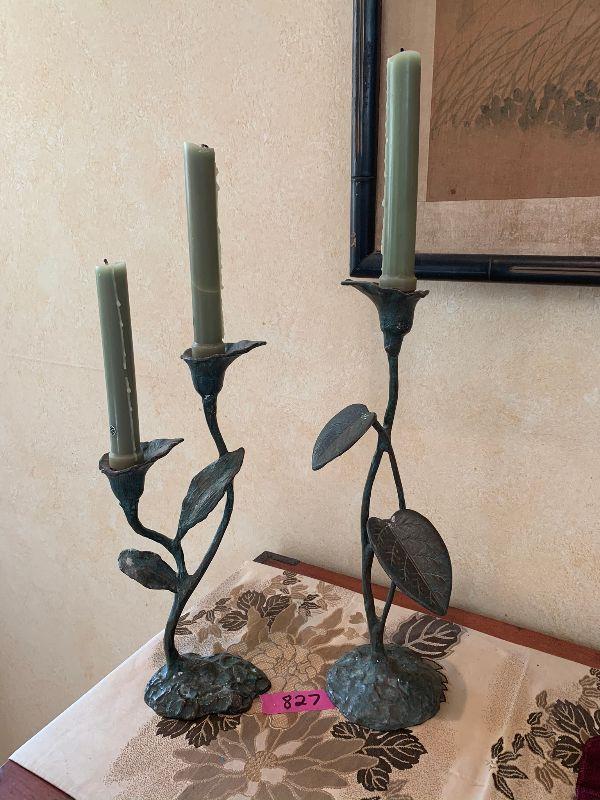 Metal candle sticks with leaf designs 15" without candles