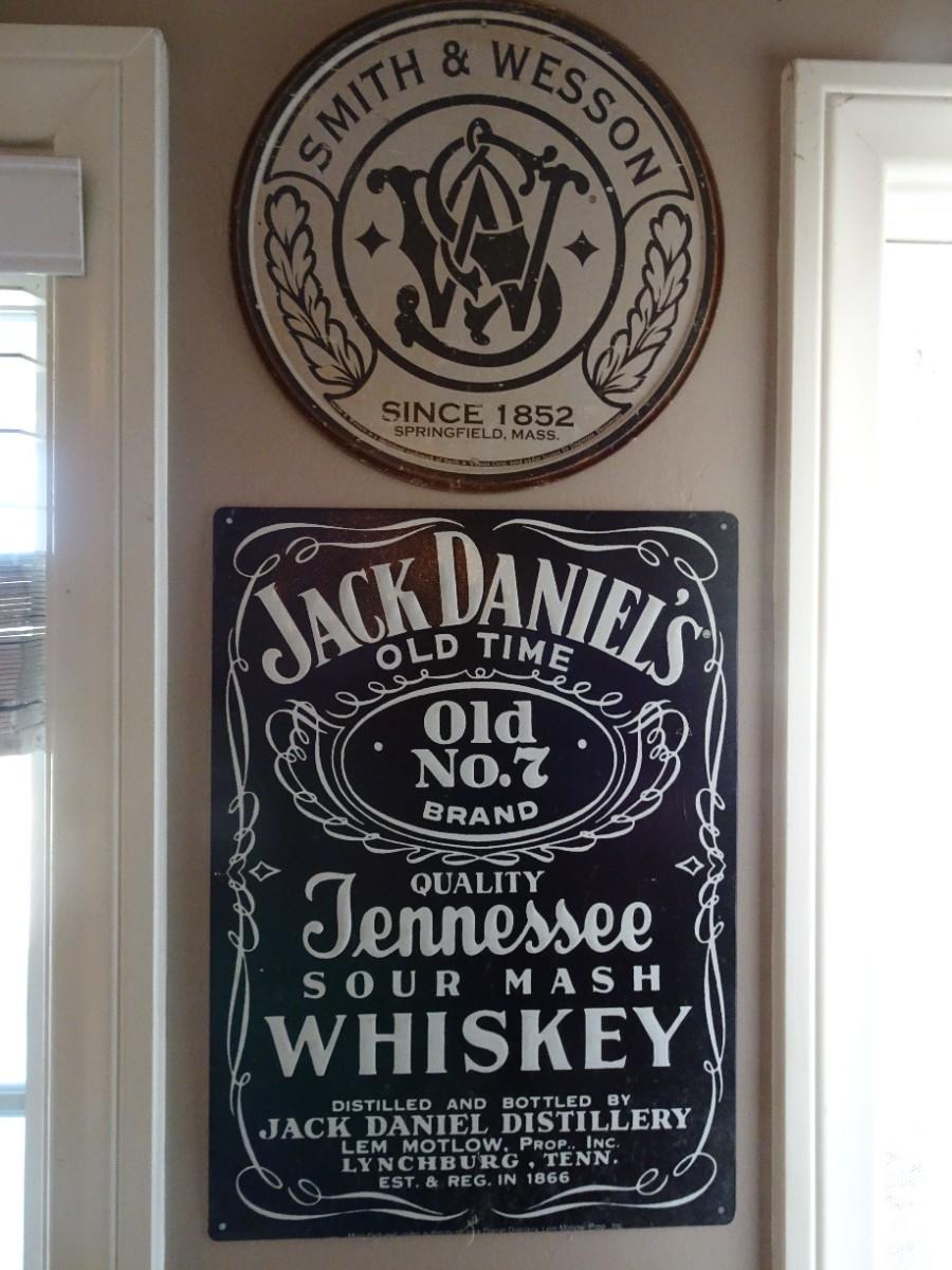 LOT 828. METAL SMITH AND WESSON AND JACK DANIEL'S SIGN