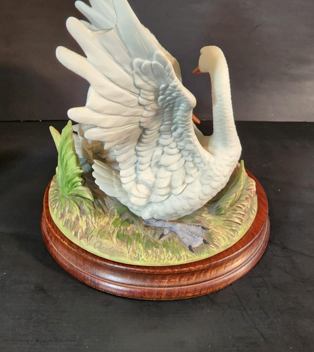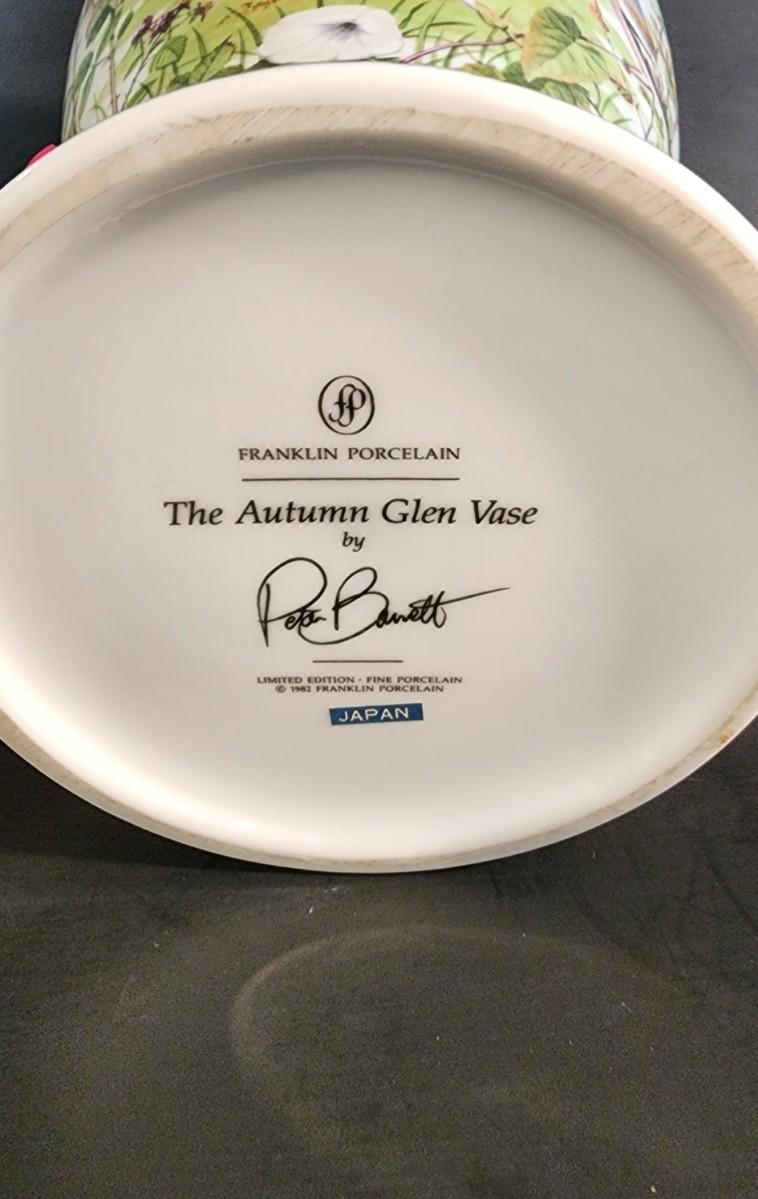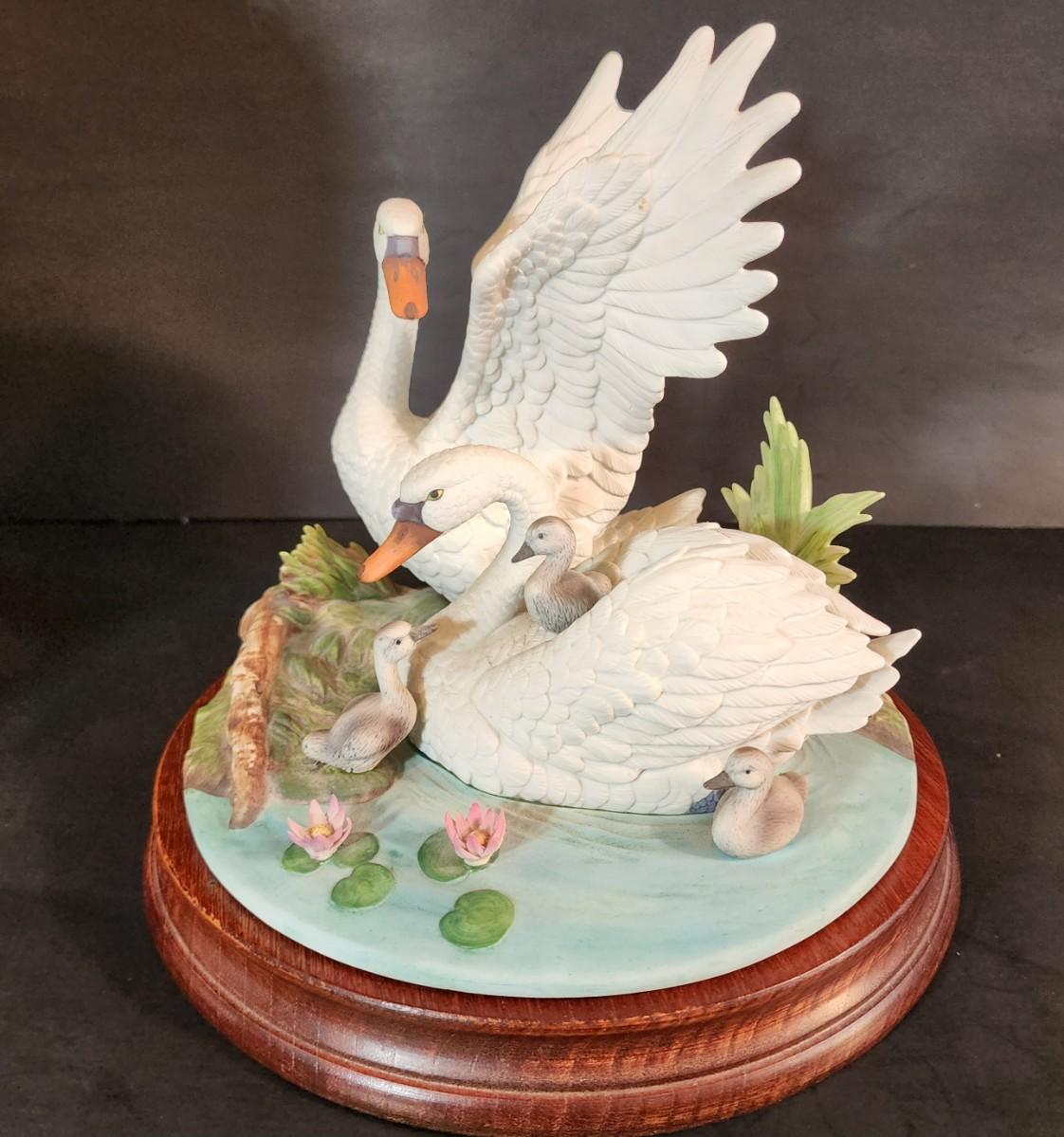 LOT 12:: Big and Beautiful-Mute Swan family by Andrea 10.25" H and Franklin Porcelain's Autumn Glen Vase by Peter Barrett  Japan  12.5" H