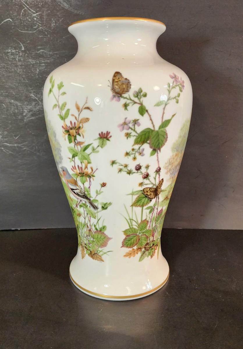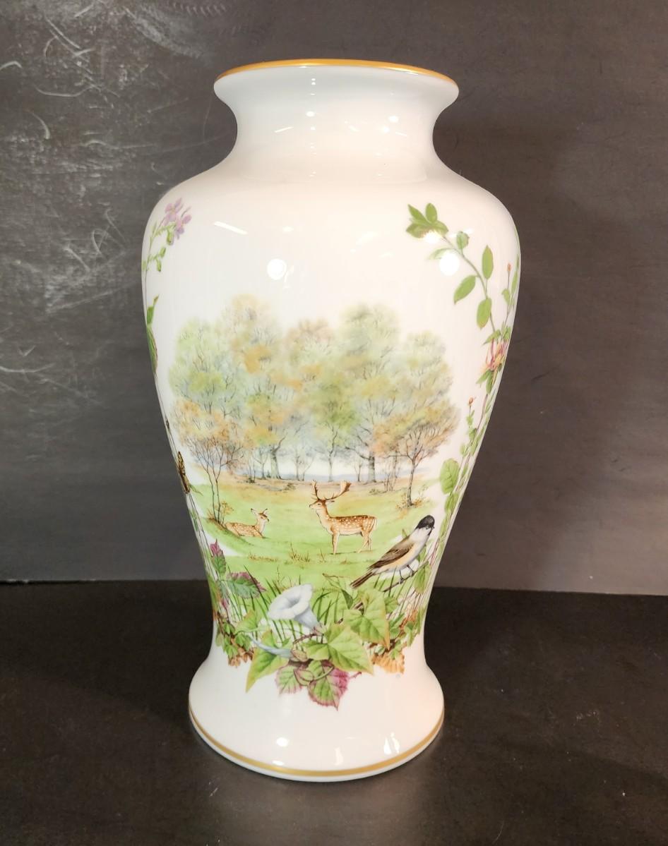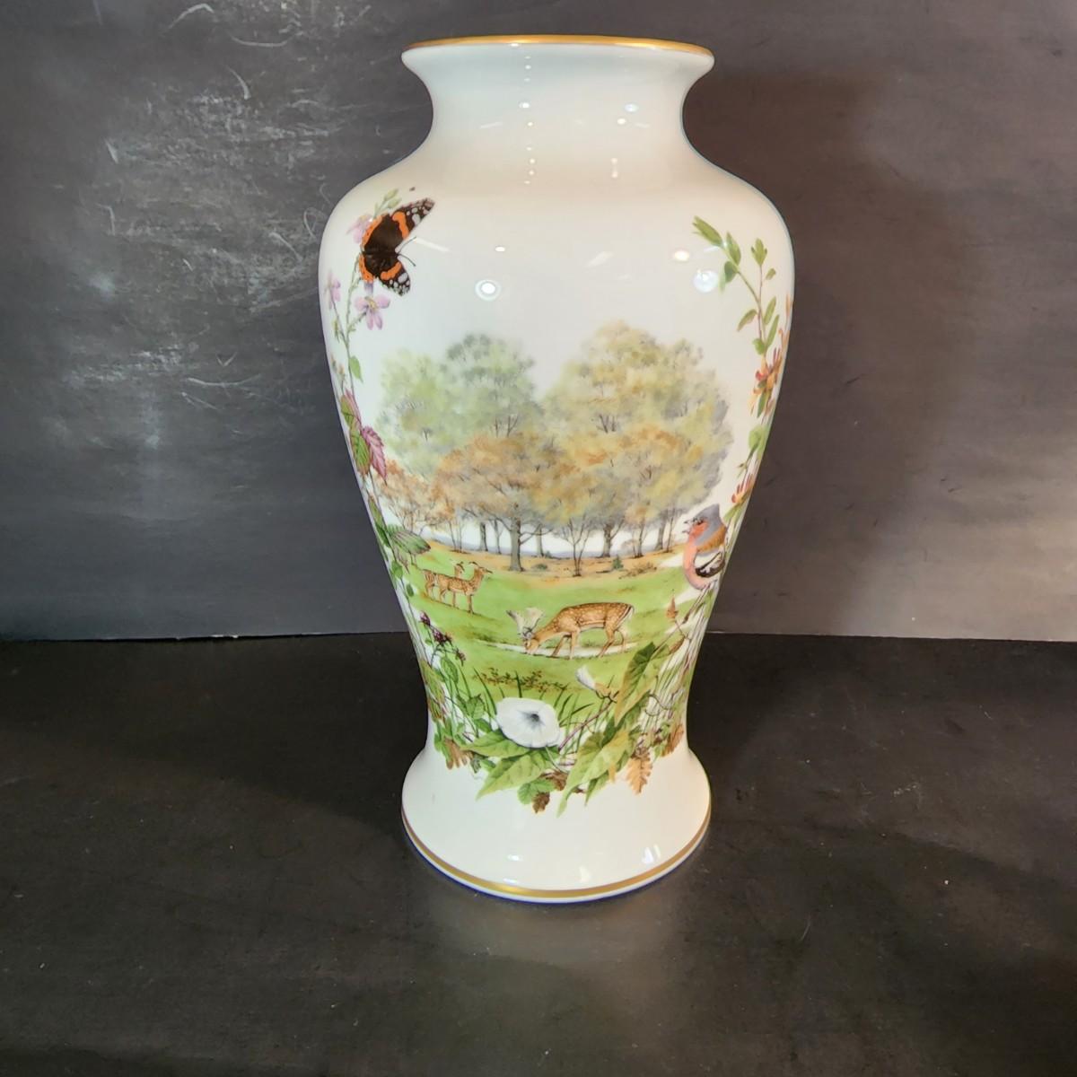 LOT 12:: Big and Beautiful-Mute Swan family by Andrea 10.25" H and Franklin Porcelain's Autumn Glen Vase by Peter Barrett  Japan  12.5" H