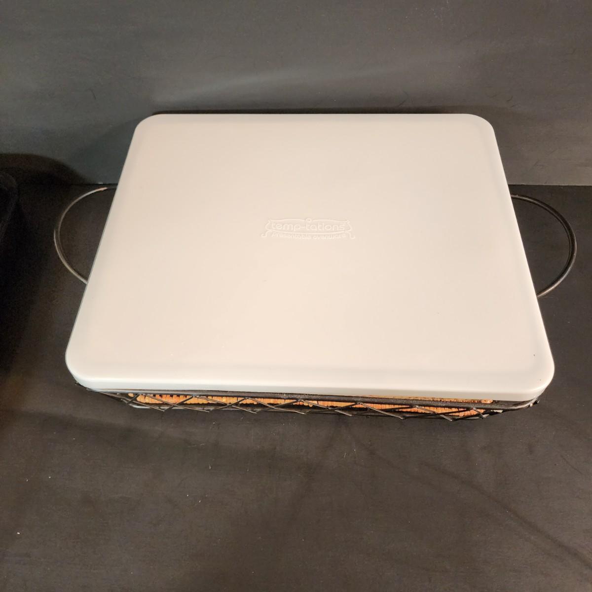 LOT 13:: Casserole Dishes- Temp-Tations by Tara with lid and caddy,  Pfaltzgraff and Pyrex