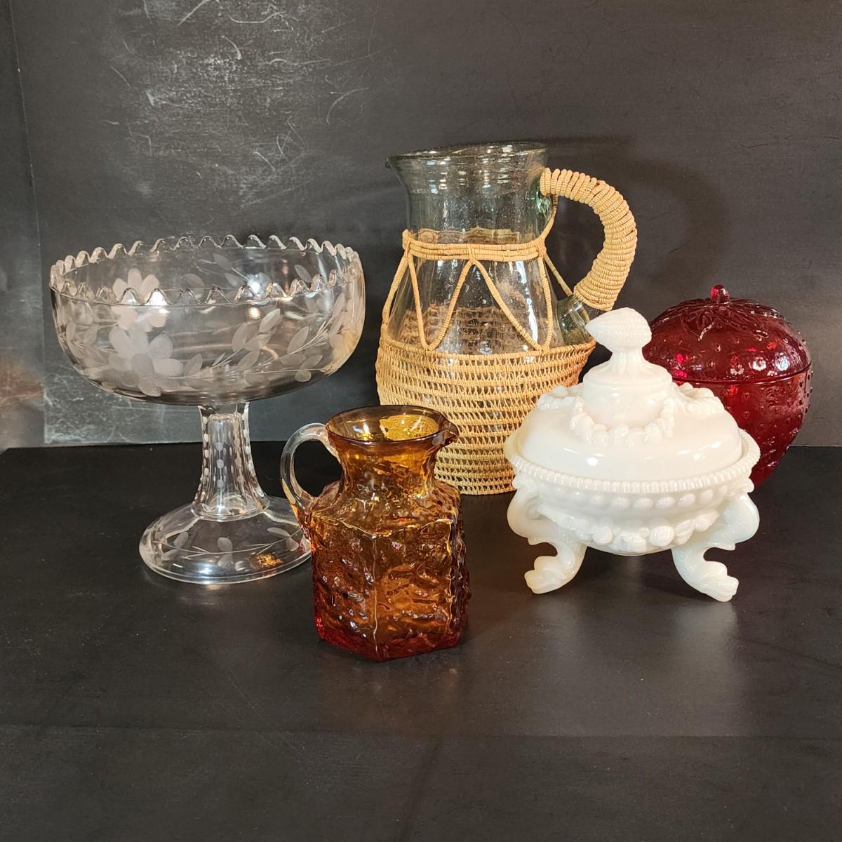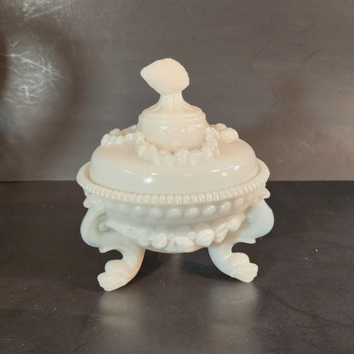 LOT 20:: Vintage collectible glass-Westmoreland Milk glass covered dish and more