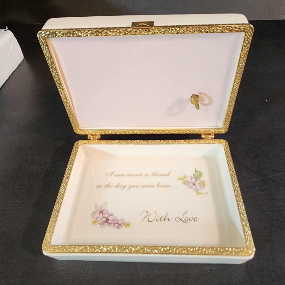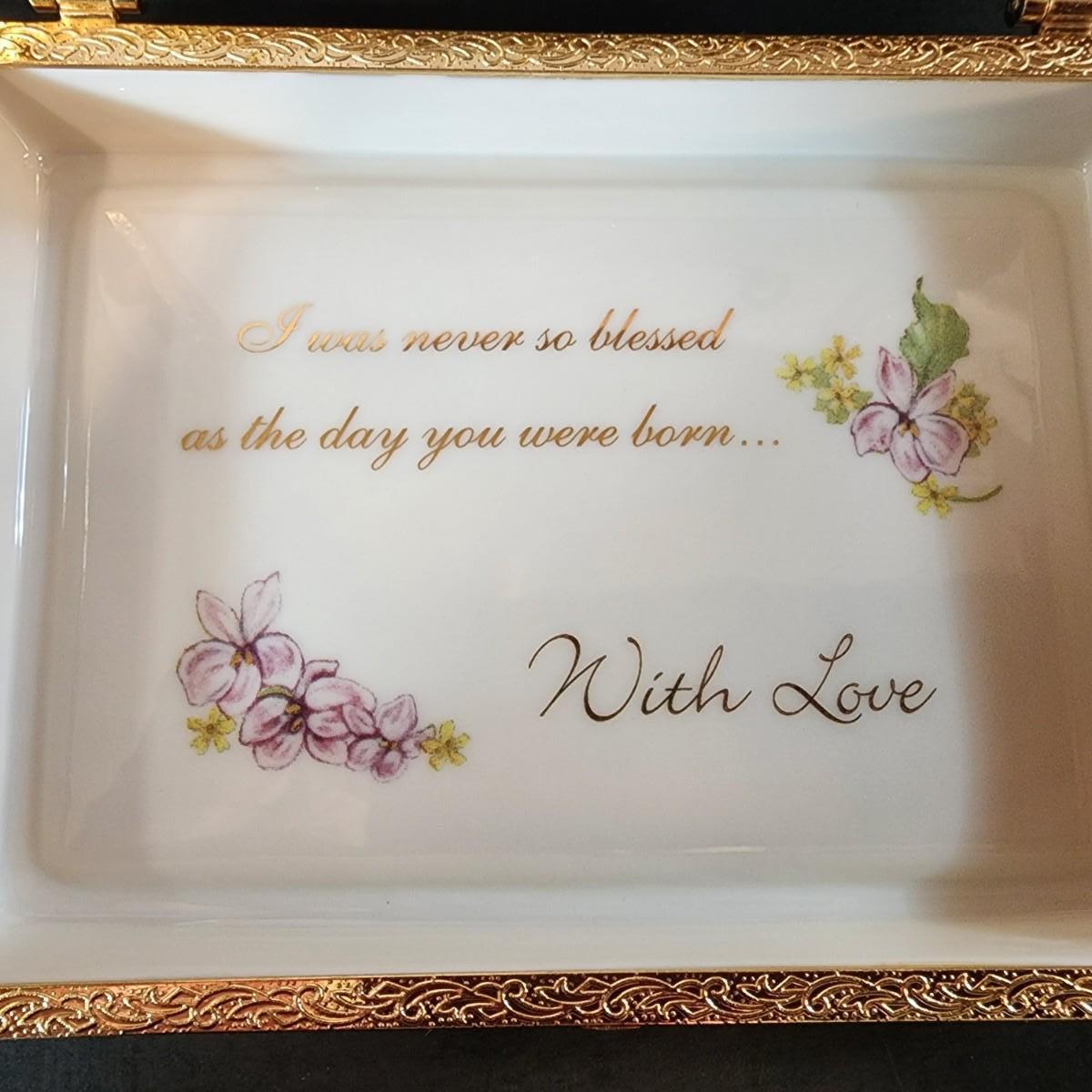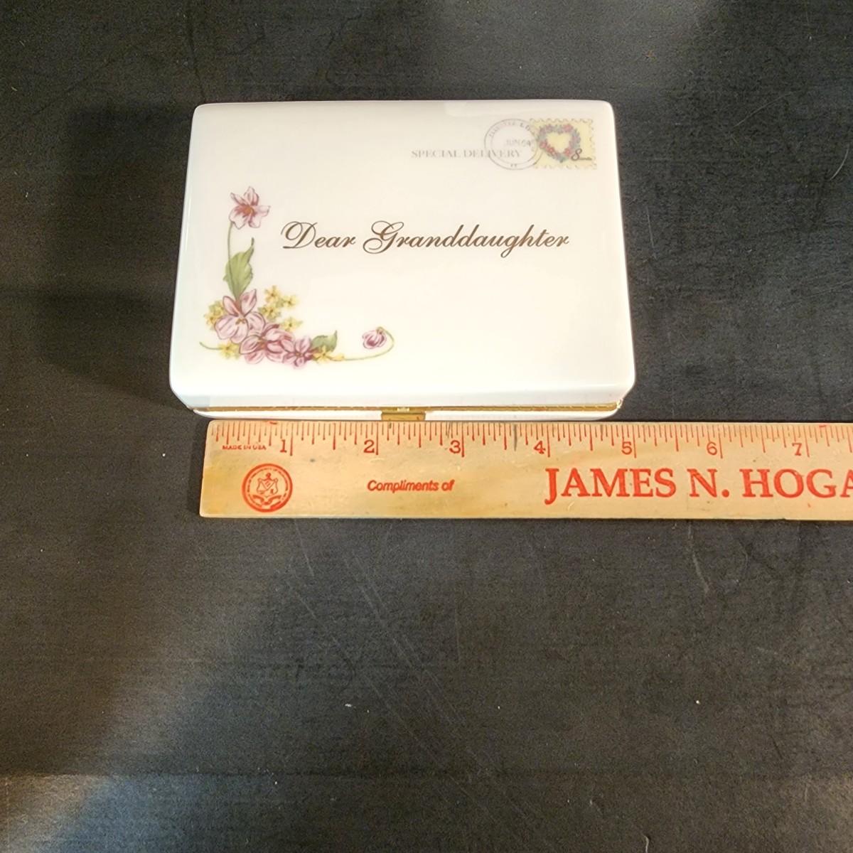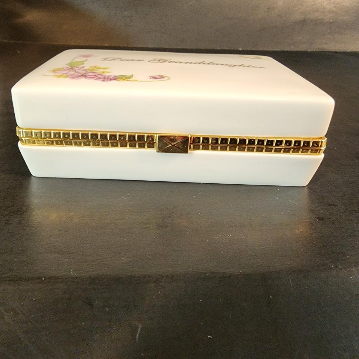 LOT 35:: Ardleigh Elliot NEW with COA Porcelain Music Box- "Dear Granddaughter"